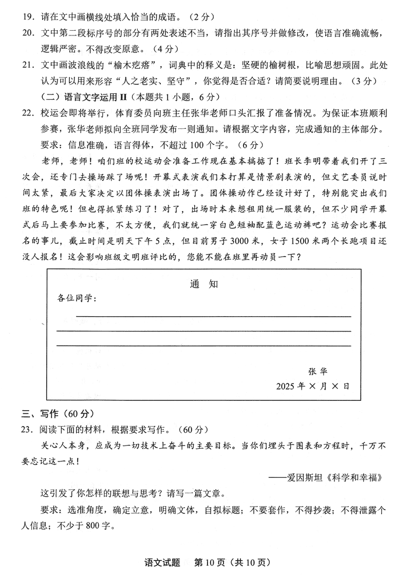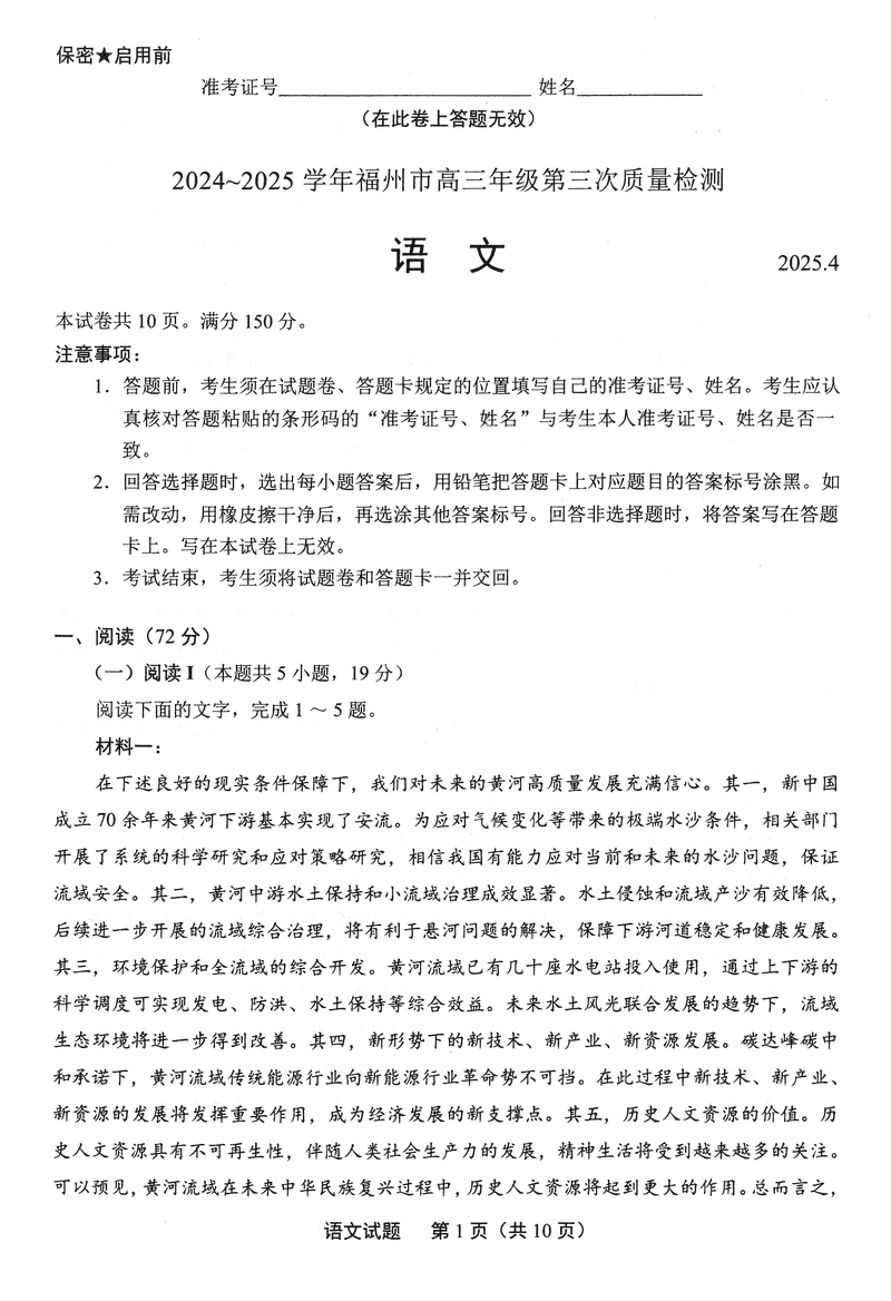 福建2025年4月高三九市联考语文试题及答案 时间:2025-04-10 福建 语文试题 福建2025年4月高三九市联考语文考试已于近日开考,为方便考生考后及时查看考试情况,查漏补缺、弥补不足,本文整理了试题答案解析相关信息! 汇总:福建2025年4月高三九市联考试题及答案汇总 语文试题及答案解析