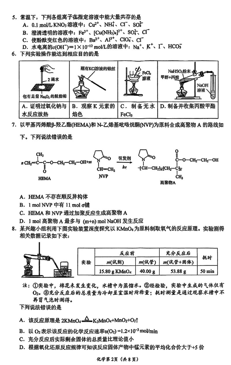 南充三诊高2025届高考适应性化学试题及答案 时间:2025-04-10 四川 理综试题 南充三诊高2025届高考适应性化学考试已于近日开考,为方便考生考后及时查看考试情况,查漏补缺、弥补不足,本文整理了试题答案解析相关信息! 汇总:南充三诊高2025届高考适应性考试试题及答案汇总 化学试题及答案解析