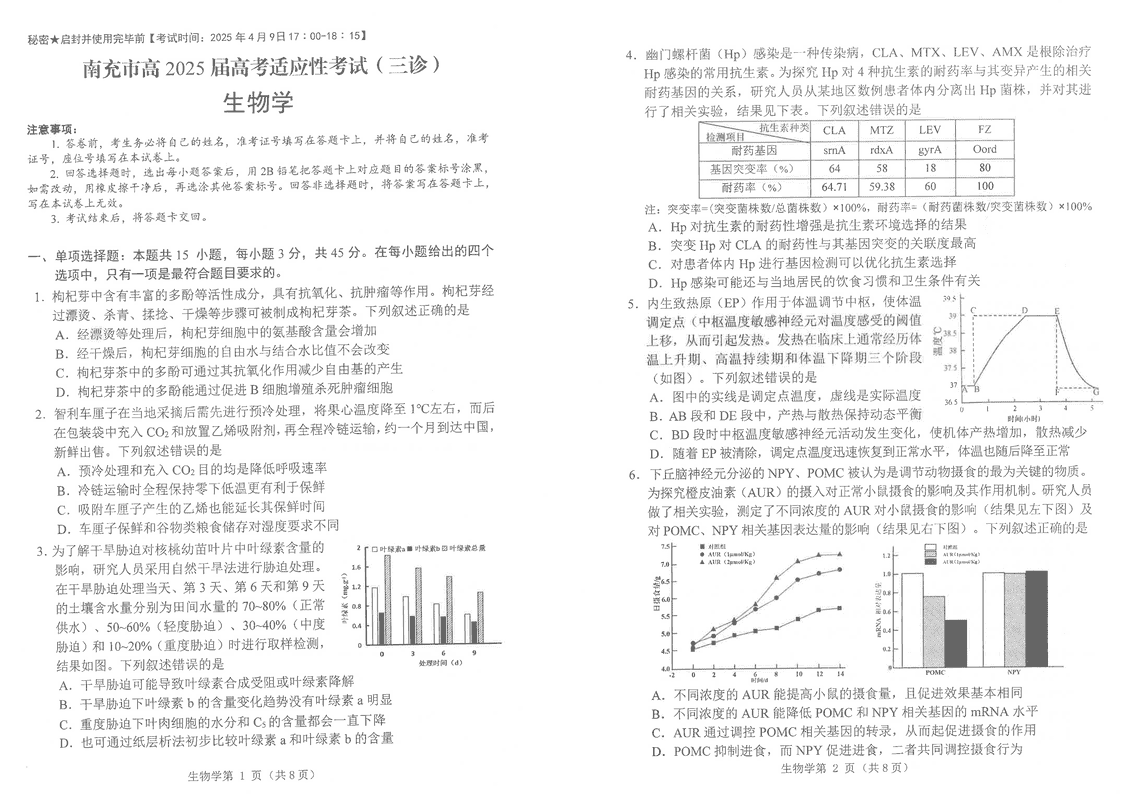 南充三诊高2025届高考适应性生物试题及答案 时间:2025-04-10 四川 理综试题 南充三诊高2025届高考适应性生物考试已于近日开考,为方便考生考后及时查看考试情况,查漏补缺、弥补不足,本文整理了试题答案解析相关信息! 汇总:南充三诊高2025届高考适应性考试试题及答案汇总 生物试题及答案解析