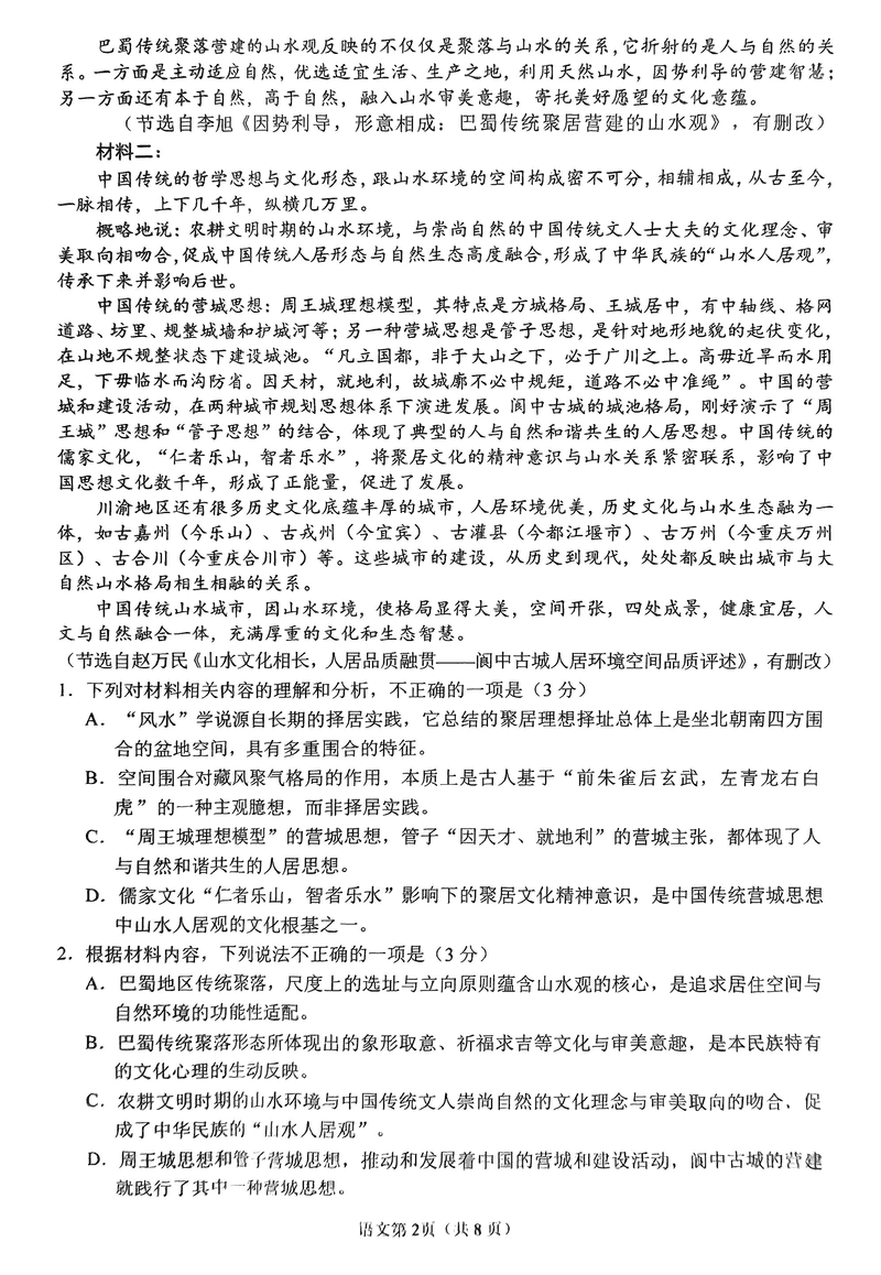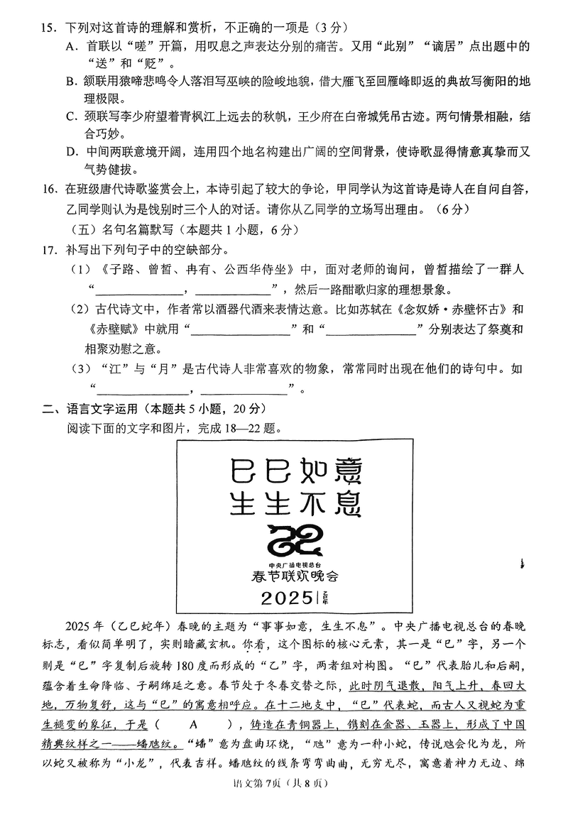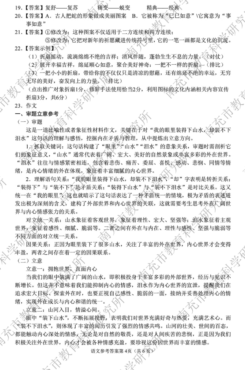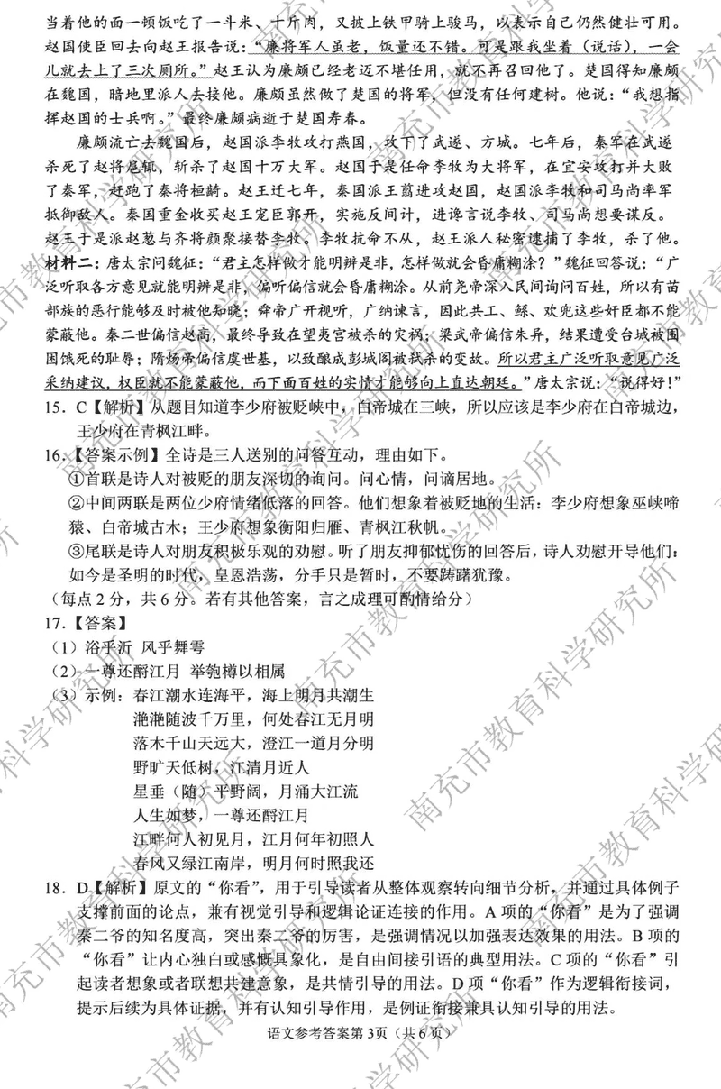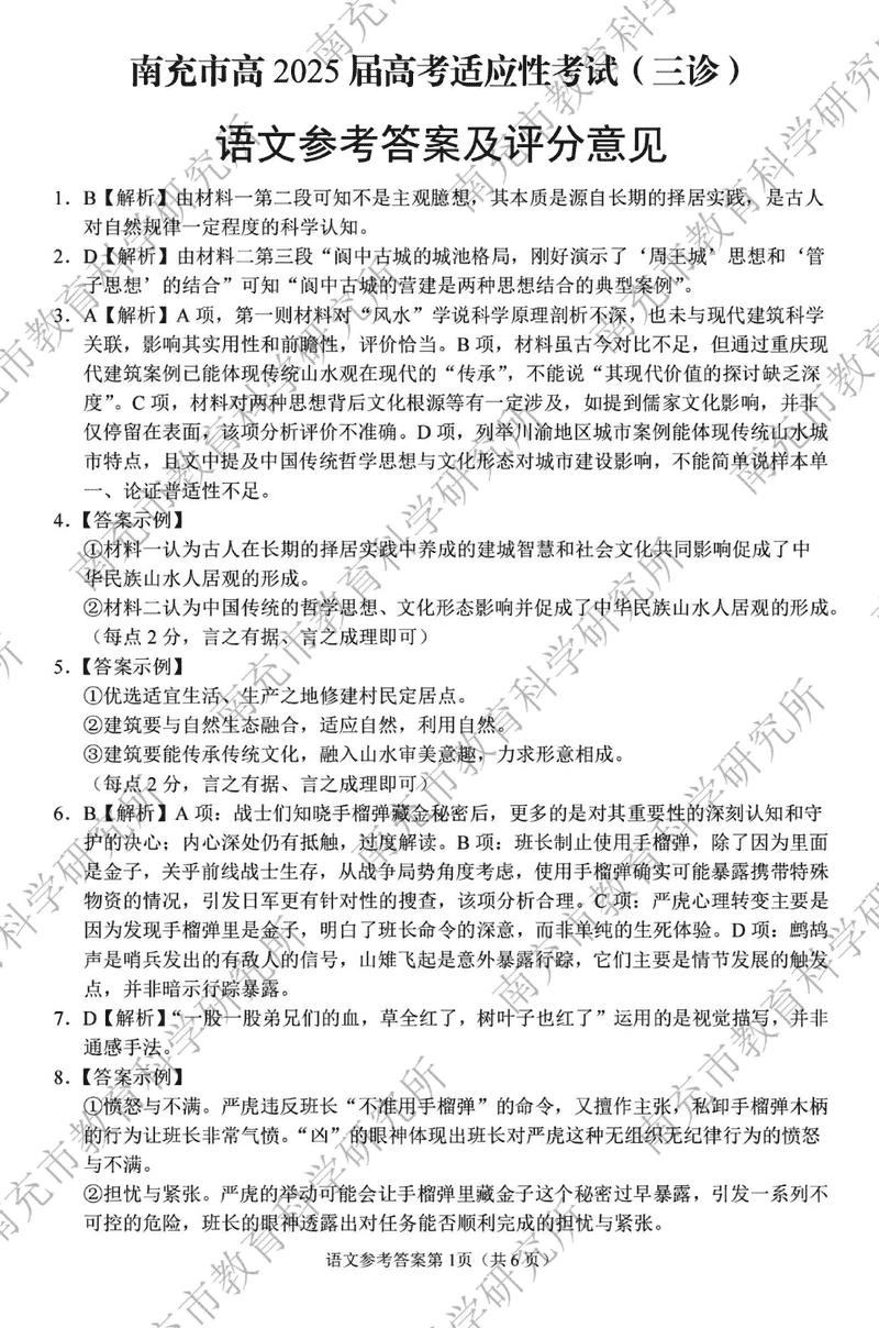 南充三诊高2025届高考适应性语文试题及答案 时间:2025-04-10 四川 语文试题 南充三诊高2025届高考适应性语文考试已于近日开考,为方便考生考后及时查看考试情况,查漏补缺、弥补不足,本文整理了试题答案解析相关信息! 汇总:南充三诊高2025届高考适应性考试试题及答案汇总 语文试题及答案解析