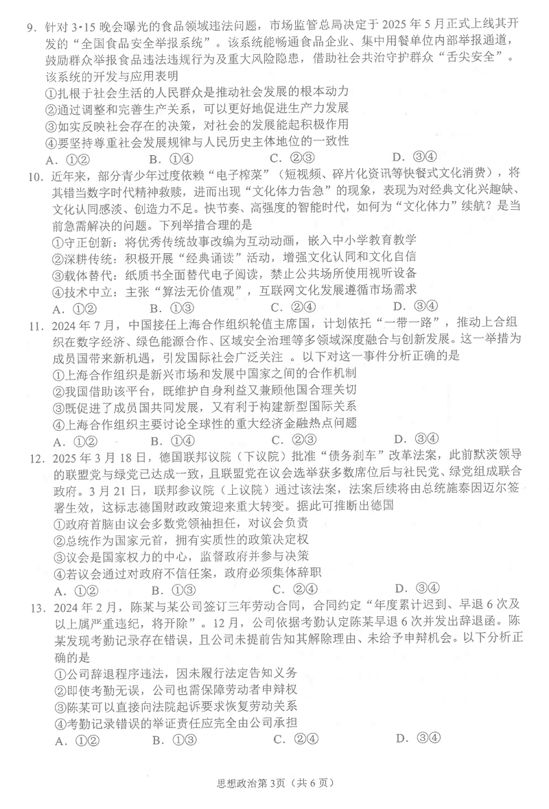 南充三诊高2025届高考适应性政治考试已于近日开考,为方便考生考后及时查看考试情况,查漏补缺、弥补不足,本文整理了试题答案解析相关信息!