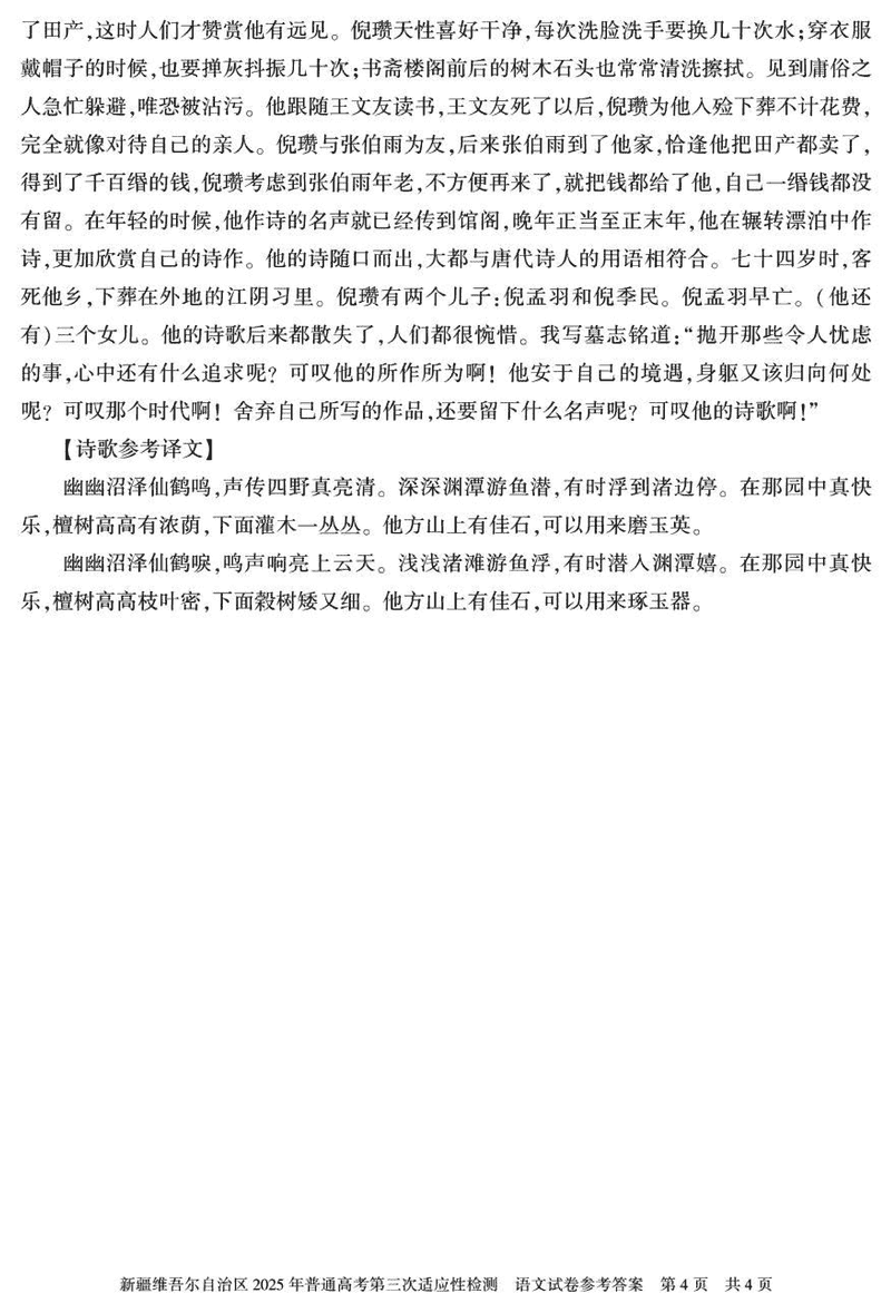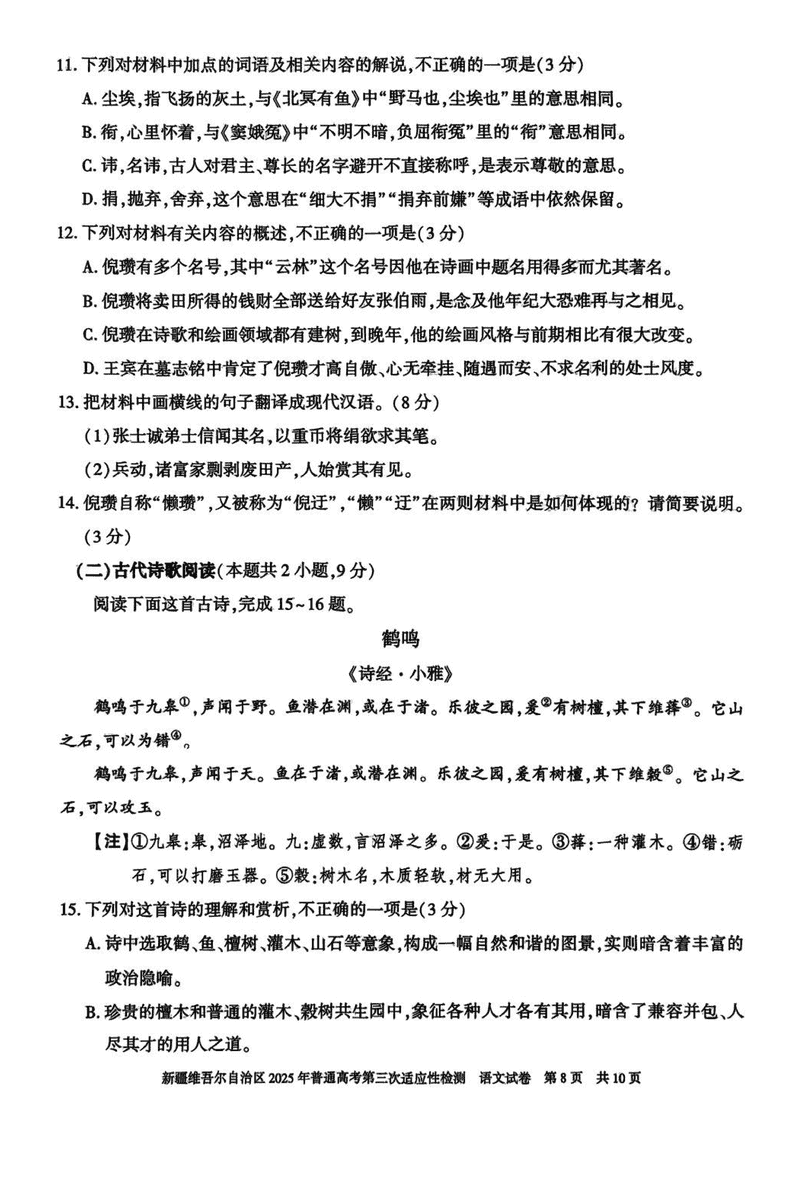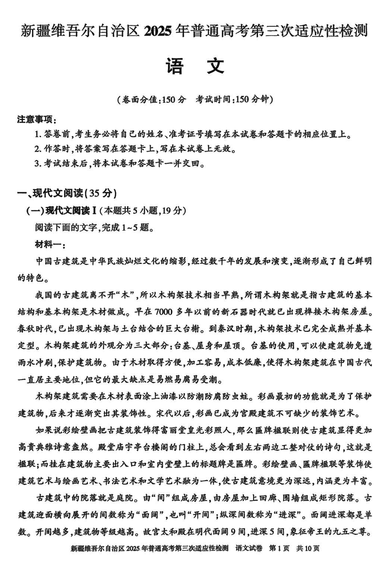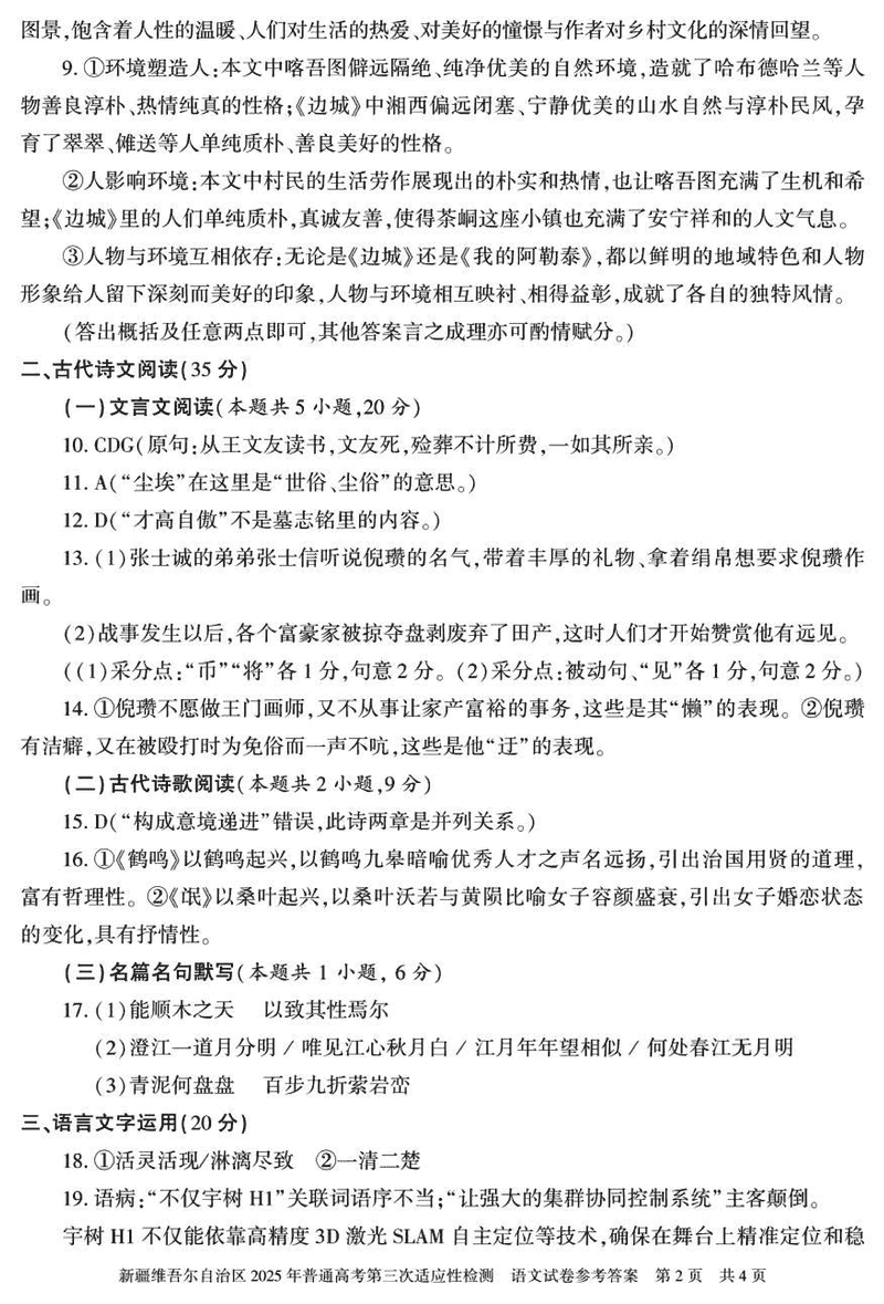 新疆2025届高三下学期第三次适应性检测语文考试已于近日开考,为方便考生考后及时查看考试情况,查漏补缺、弥补不足,本文整理了试题答案解析相关信息!
