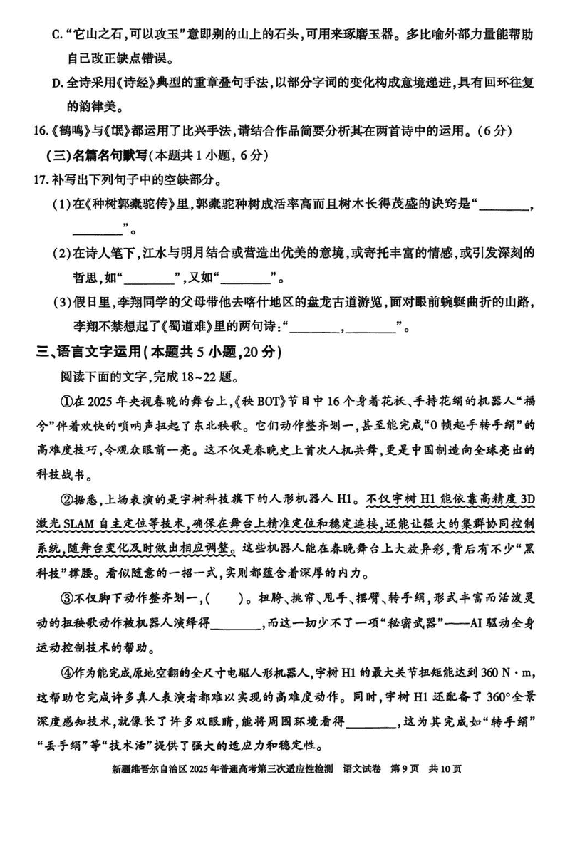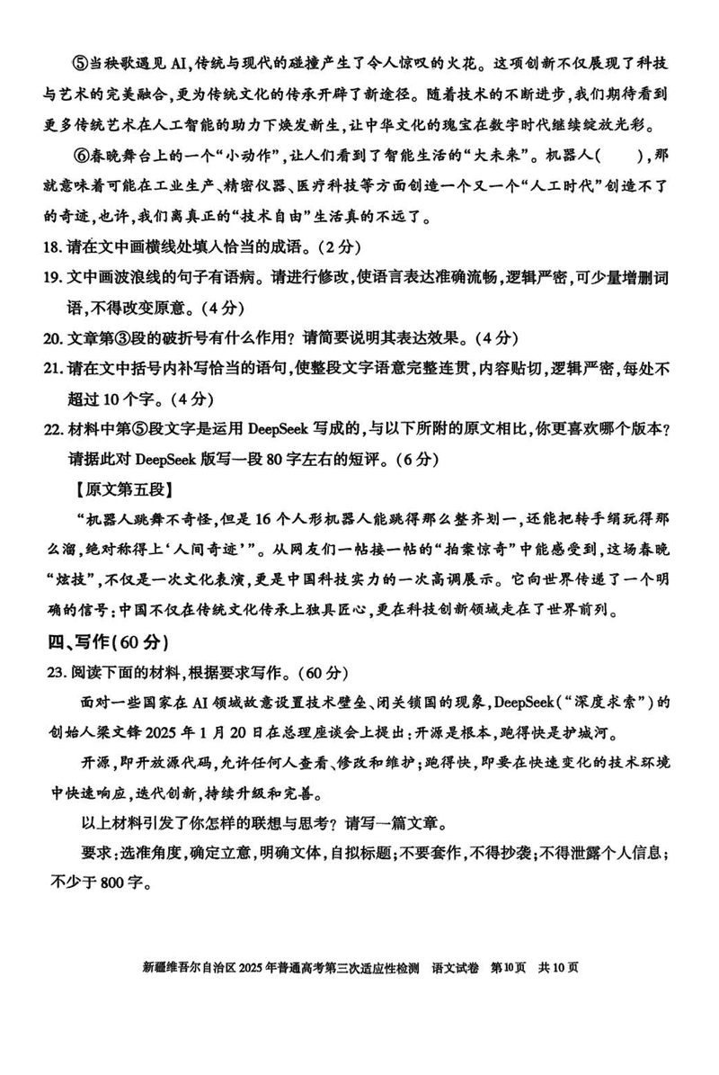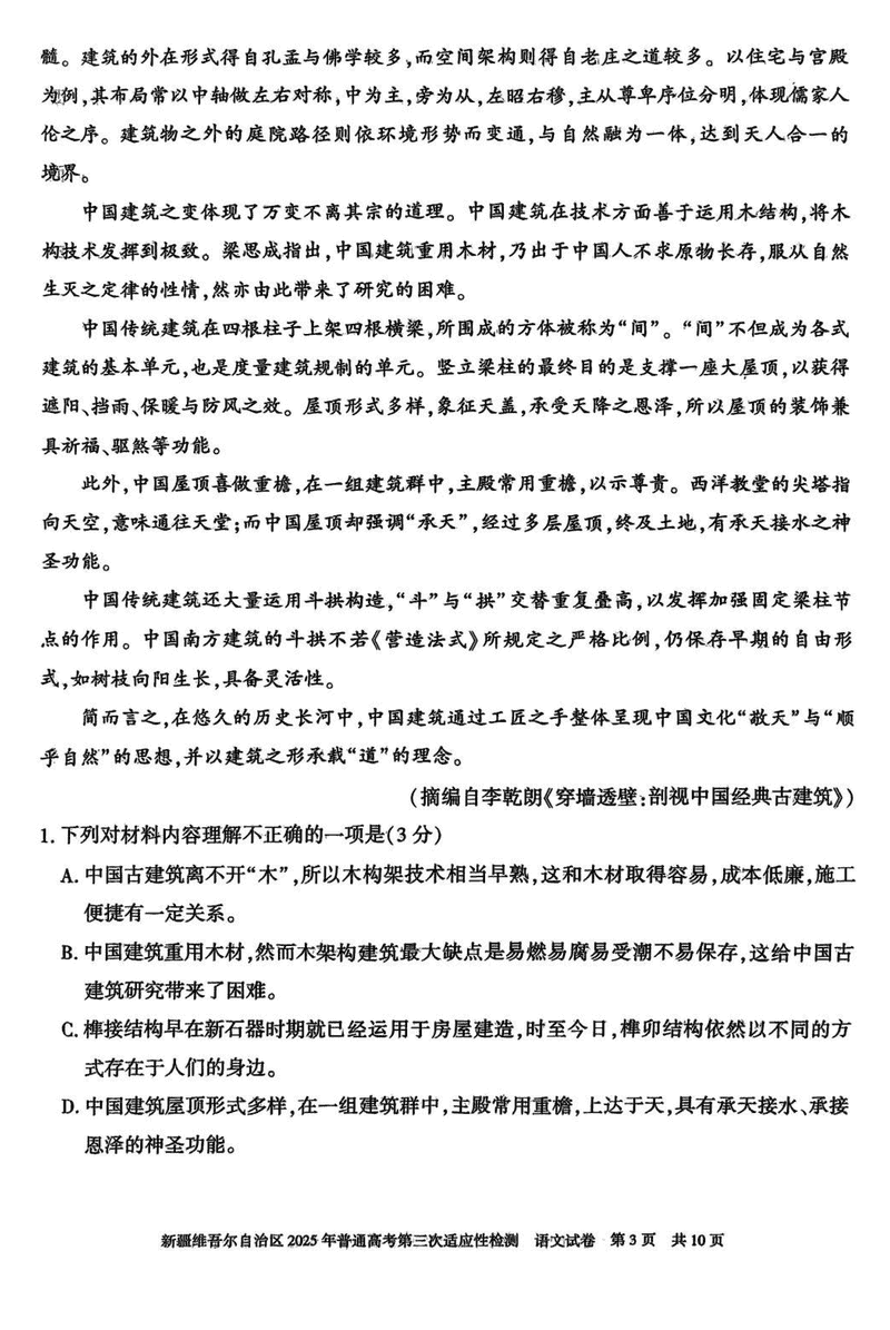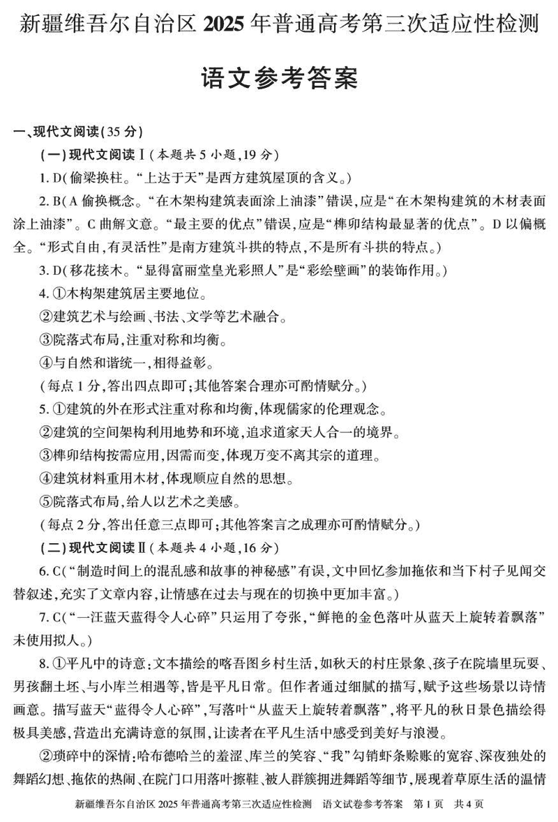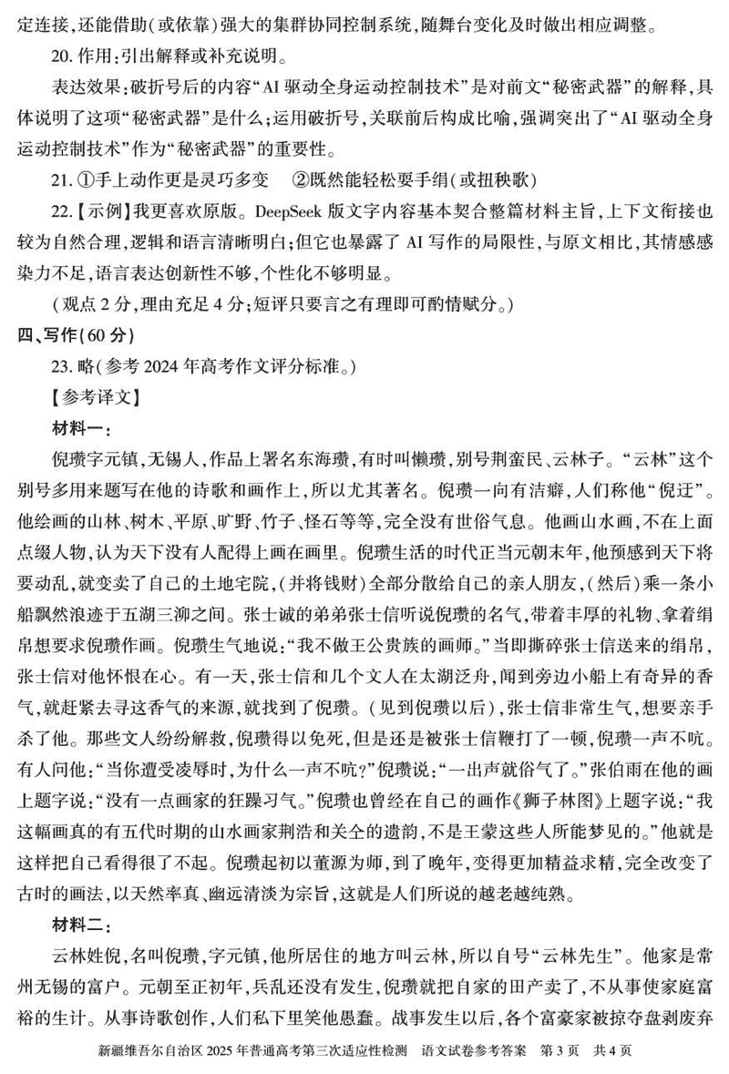 新疆2025届高三下学期第三次适应性检测语文考试已于近日开考,为方便考生考后及时查看考试情况,查漏补缺、弥补不足,本文整理了试题答案解析相关信息!
