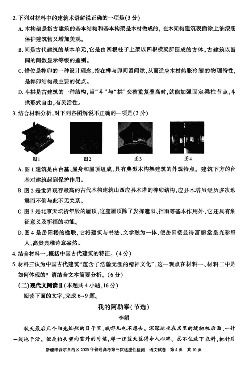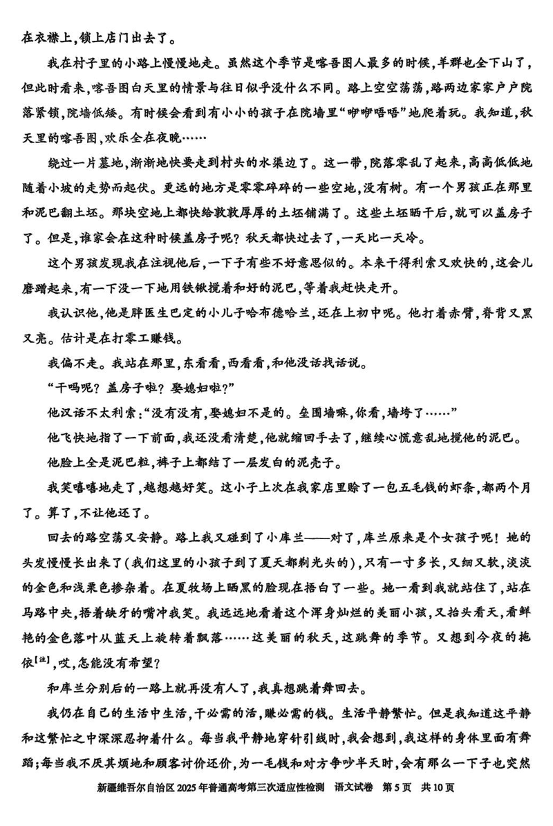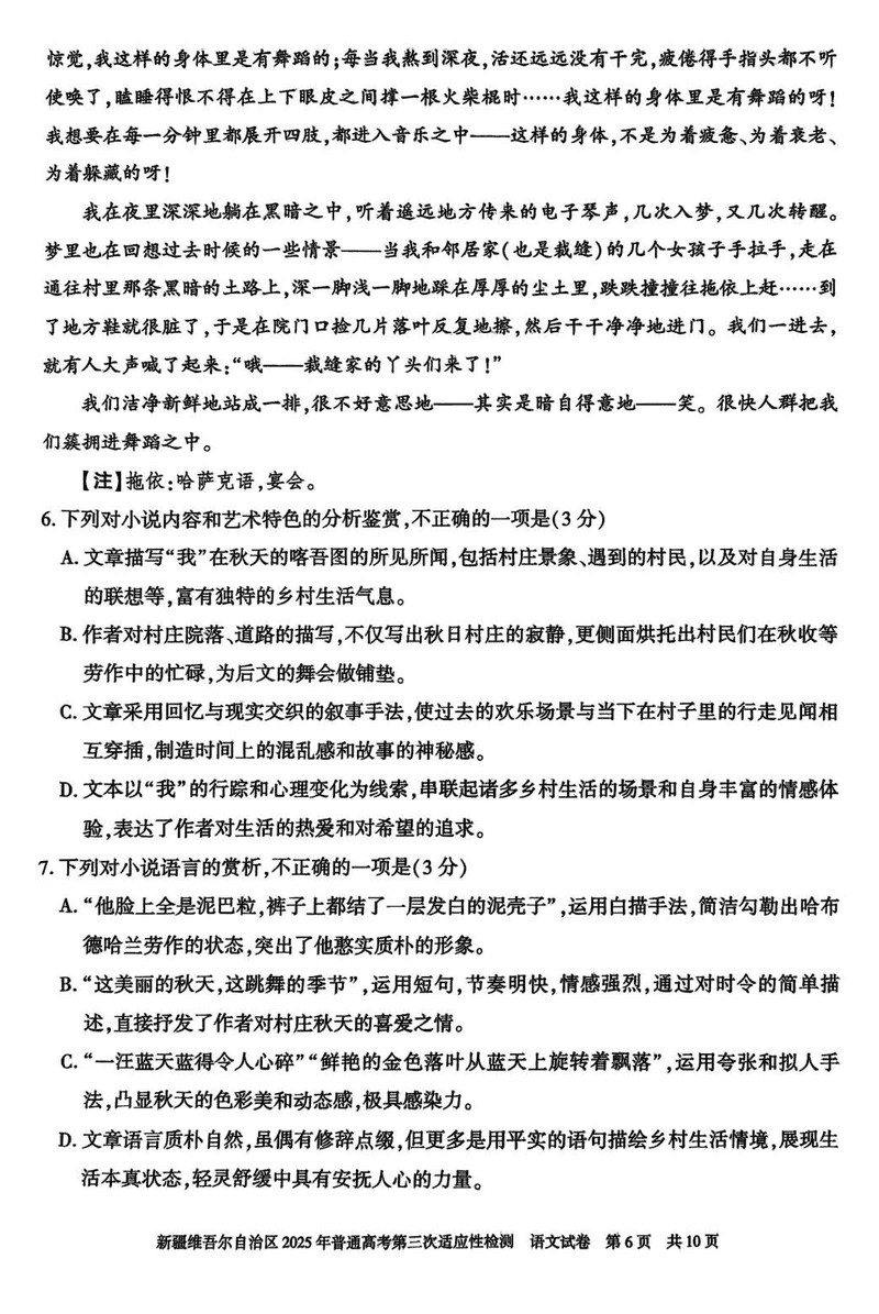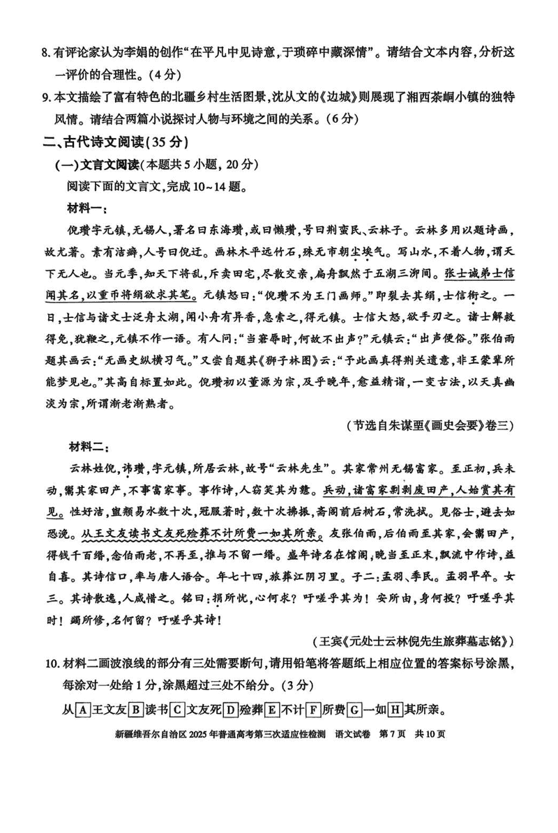 新疆2025届高三下学期第三次适应性检测语文试题及答案