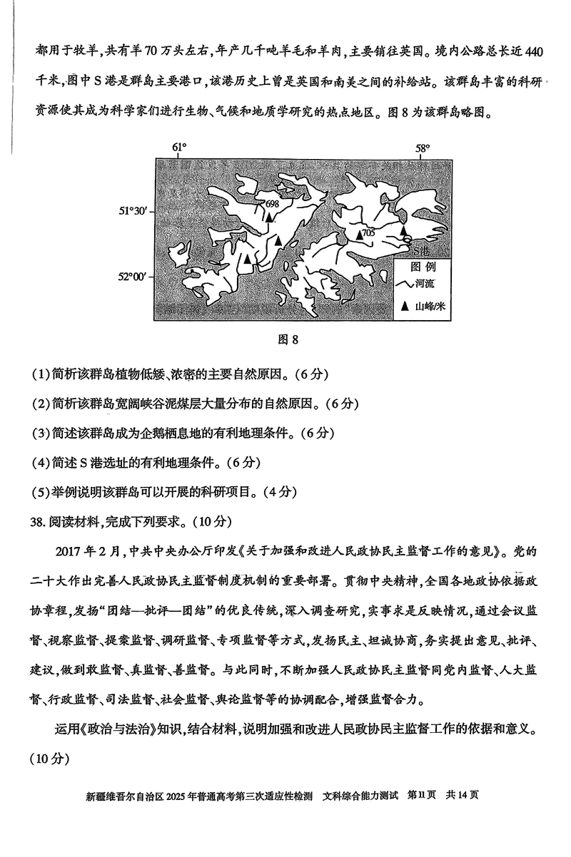 新疆2025届高三下学期第三次适应性检测文综试题及答案