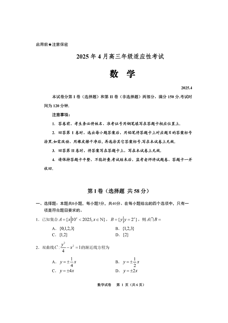 贵州2025年4月高三年级适应性数学试题及答案 时间:2025-04-12 贵州 数学试题 贵州2025年4月高三年级适应性数学考试已于近日开考,为方便考生考后及时查看考试情况,查漏补缺、弥补不足,本文整理了试题答案解析相关信息! 汇总:贵州2025年4月高三年级适应性考试试题及答案汇总 数学试题及答案解析