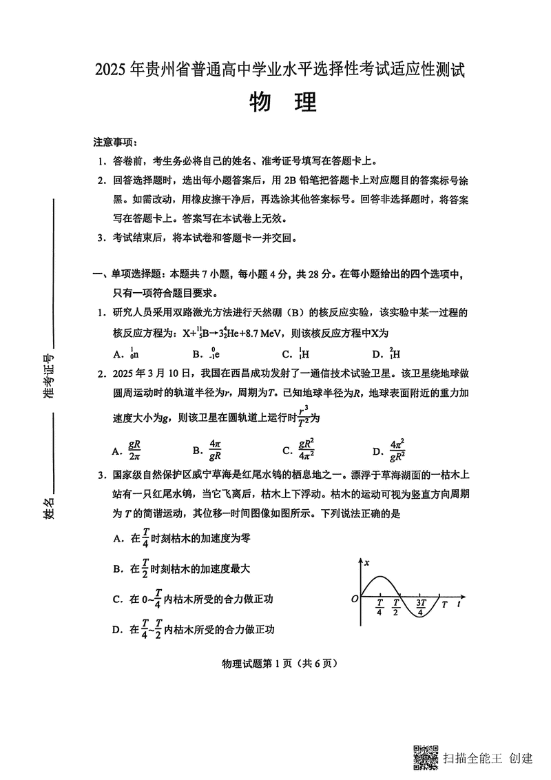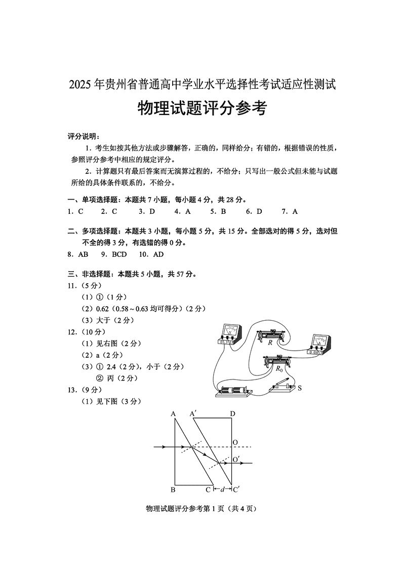 贵州2025年4月高三年级适应性物理试题及答案 时间:2025-04-12 贵州 理综试题 贵州2025年4月高三年级适应性物理考试已于近日开考,为方便考生考后及时查看考试情况,查漏补缺、弥补不足,本文整理了试题答案解析相关信息! 汇总:贵州2025年4月高三年级适应性考试试题及答案汇总 物理试题及答案解析