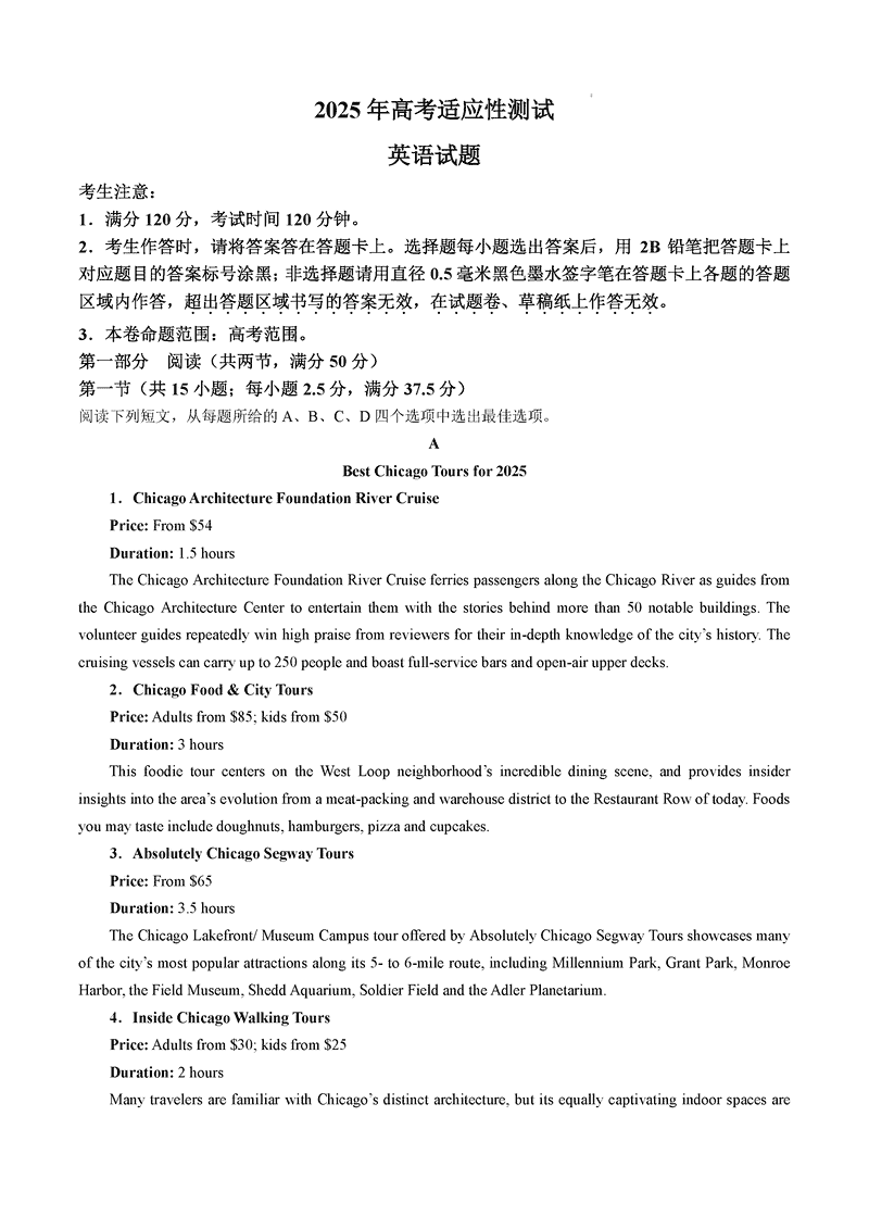 贵州2025年4月高三年级适应性英语试题及答案 时间:2025-04-12 贵州 英语试题 贵州2025年4月高三年级适应性英语考试已于近日开考,为方便考生考后及时查看考试情况,查漏补缺、弥补不足,本文整理了试题答案解析相关信息! 汇总:贵州2025年4月高三年级适应性考试试题及答案汇总 英语试题及答案解析