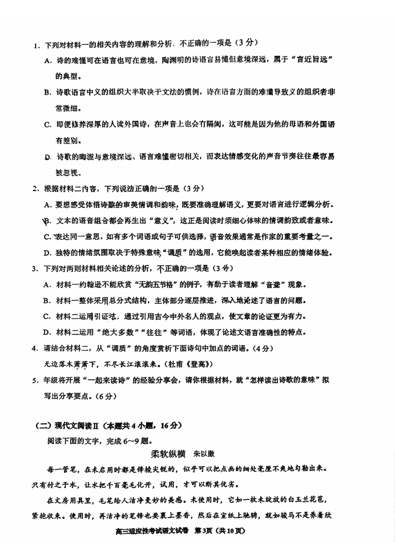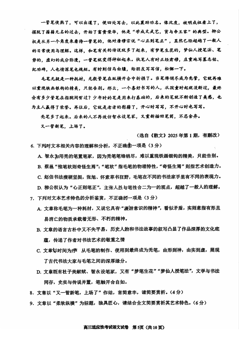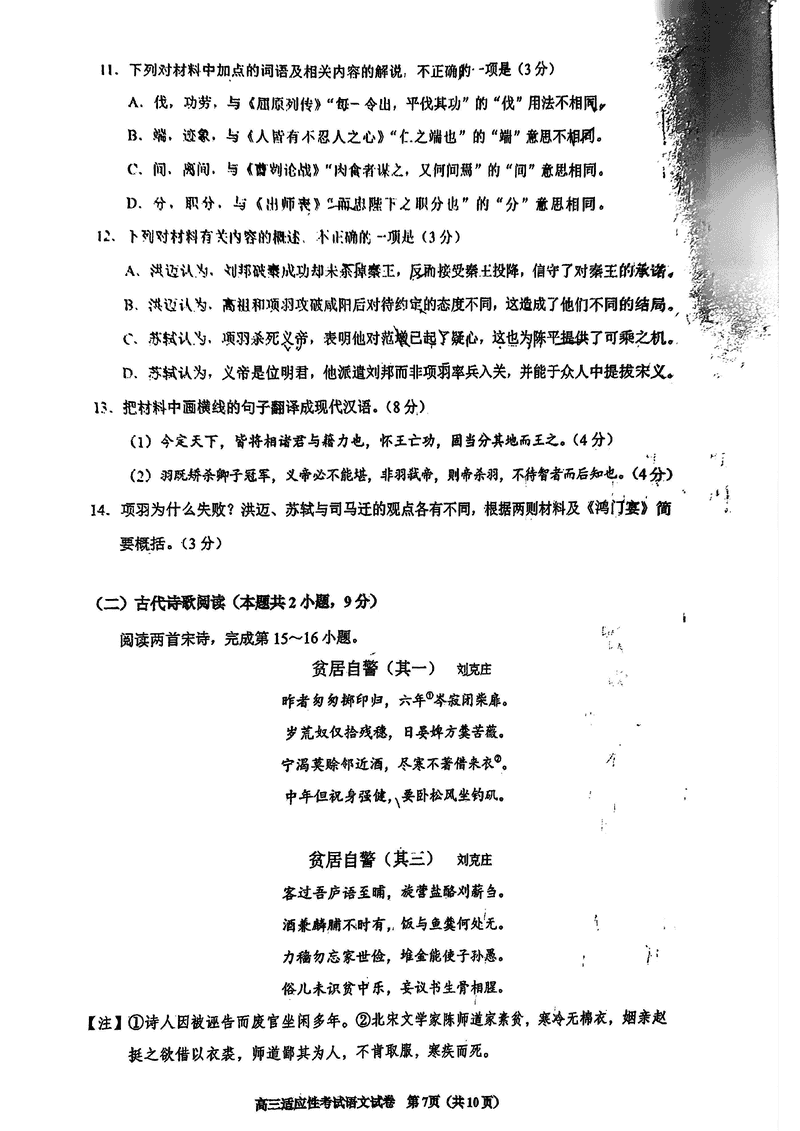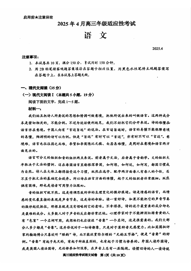 贵州2025年4月高三年级适应性语文试题及答案 时间:2025-04-12 贵州 语文试题 贵州2025年4月高三年级适应性语文考试已于近日开考,为方便考生考后及时查看考试情况,查漏补缺、弥补不足,本文整理了试题答案解析相关信息! 汇总:贵州2025年4月高三年级适应性考试试题及答案汇总 语文试题及答案解析