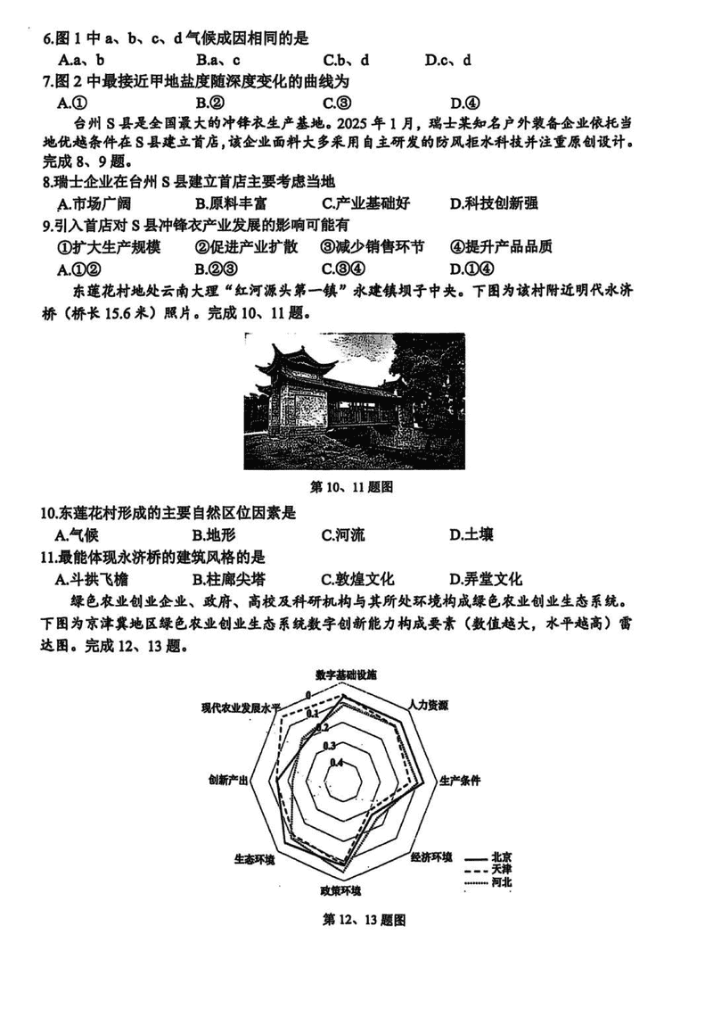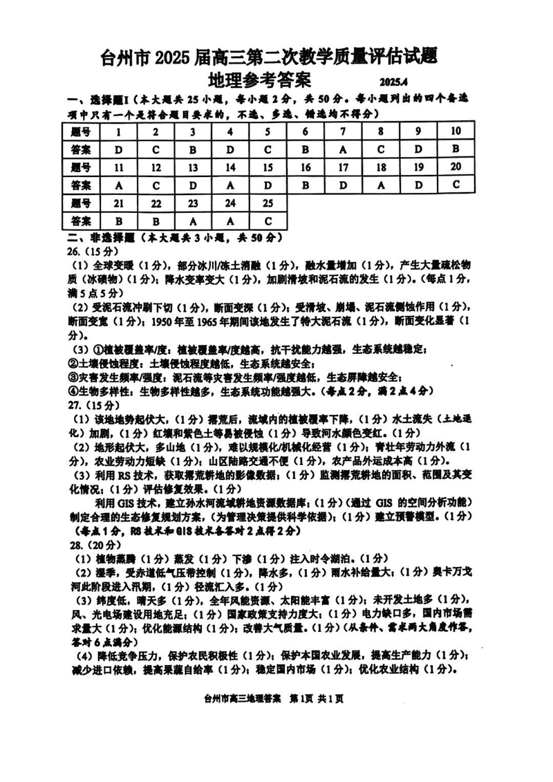 台州2025届4月高三下学期二模地理试题及答案 时间:2025-04-12 浙江 文综试题 浙江台州2025届4月高三下学期二模地理考试已于近日开考,为方便考生考后及时查看考试情况,查漏补缺、弥补不足,本文整理了试题答案解析相关信息! 汇总:浙江台州2025届4月高三下学期二模试题及答案汇总 地理试题及答案解析