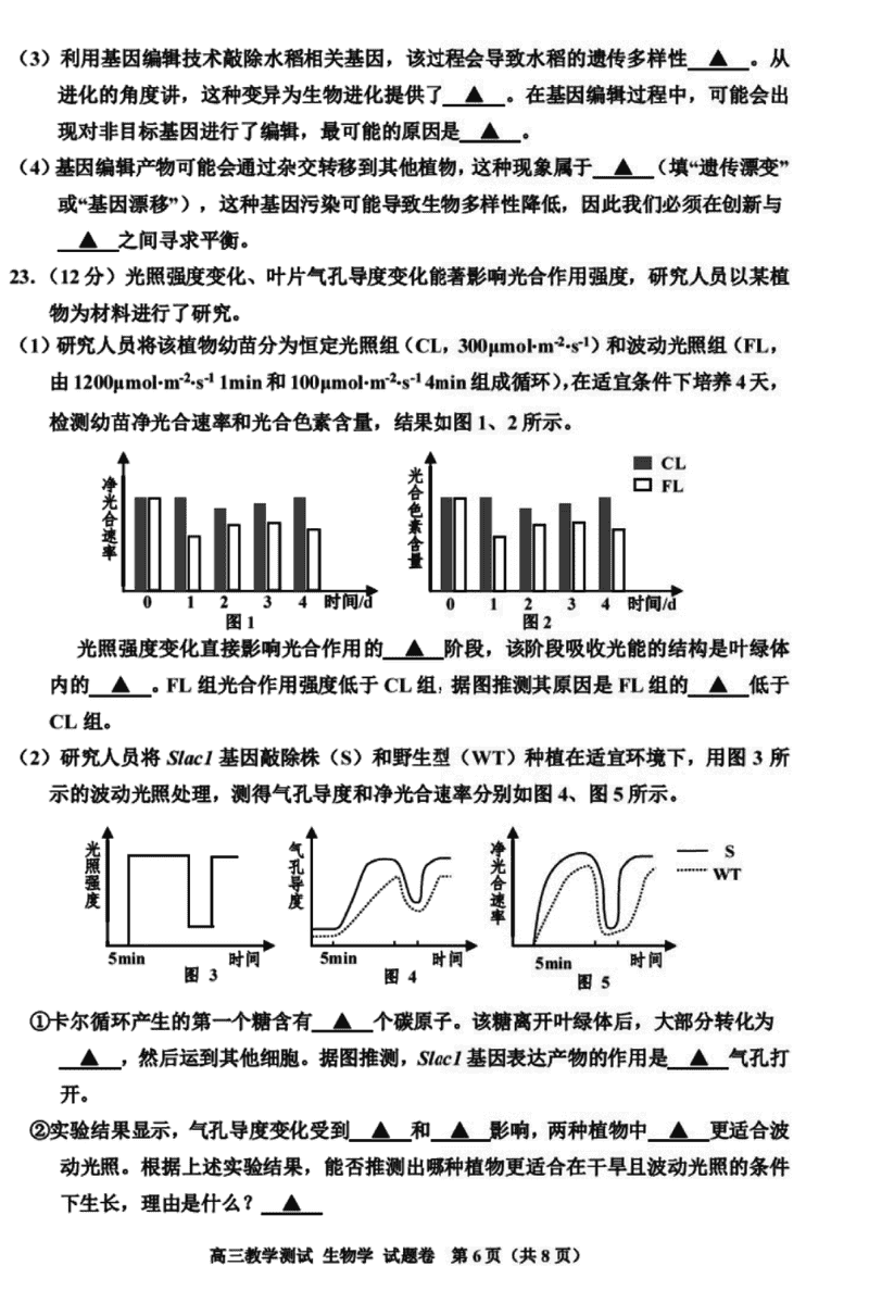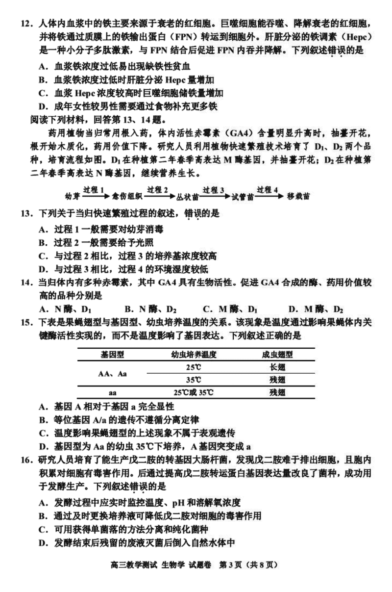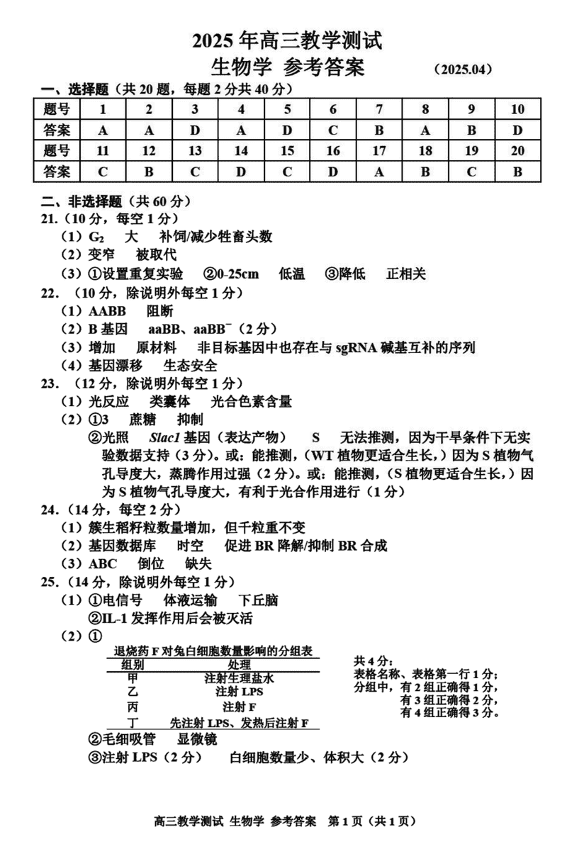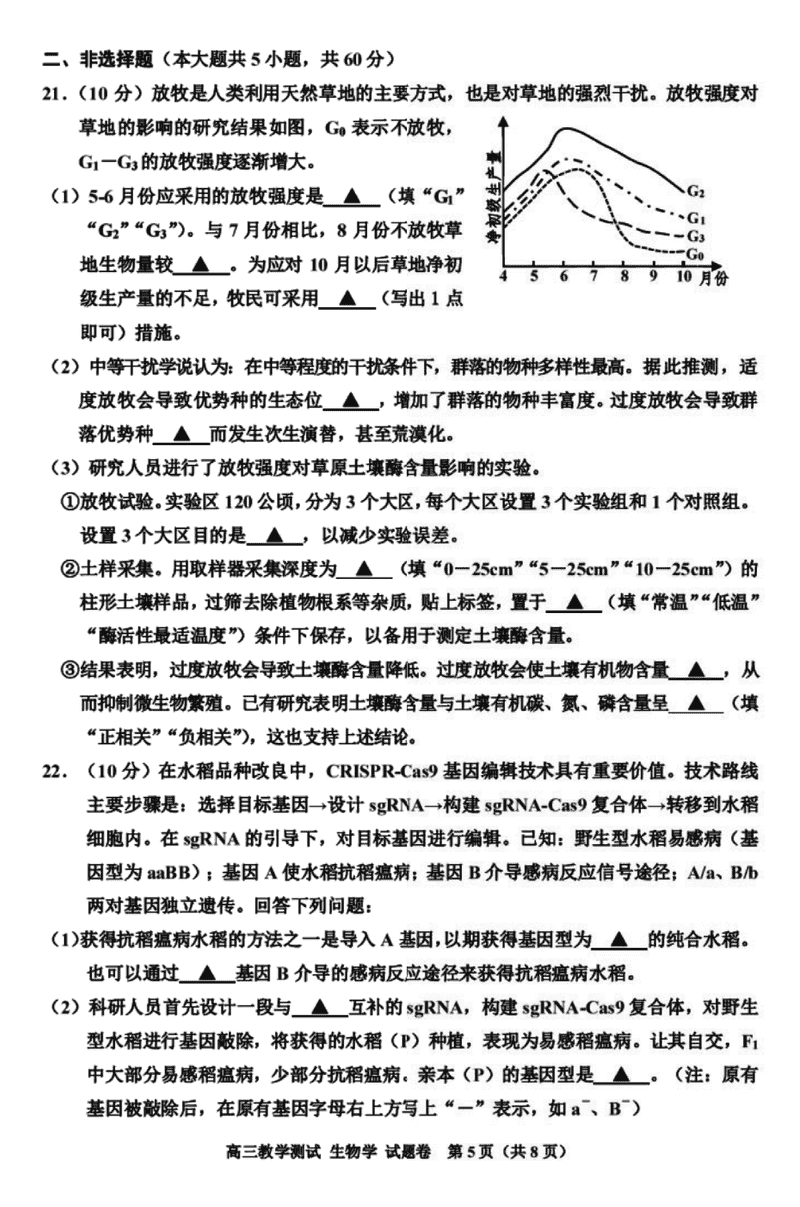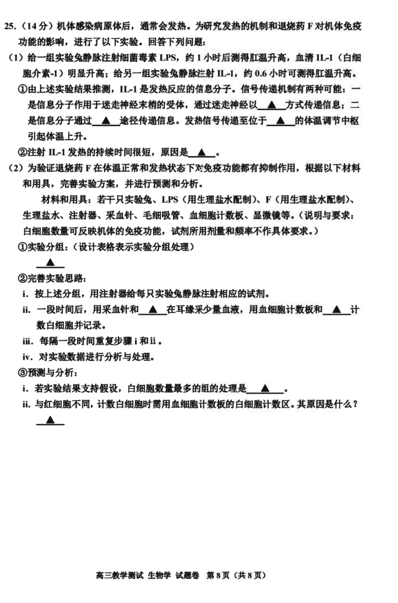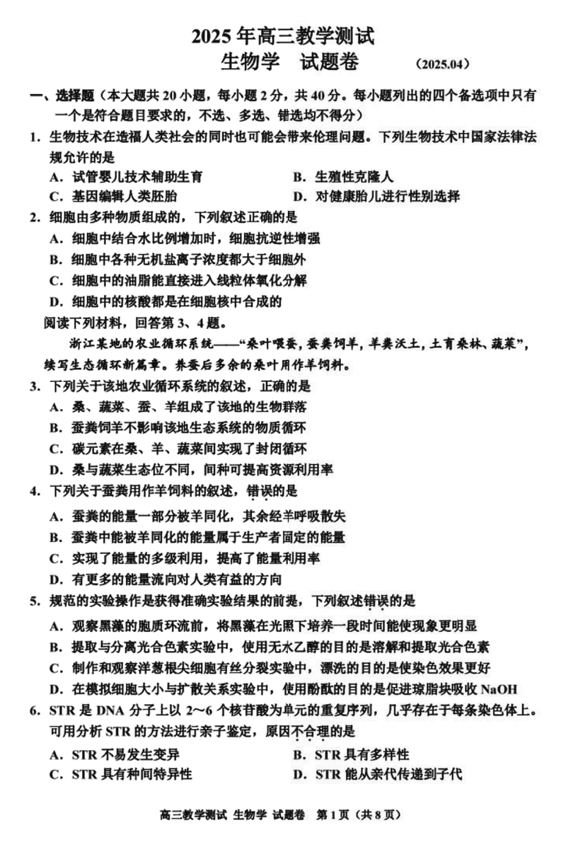 嘉兴二模2025届高三下学期4月教学测试生物考试已于近日开考,为方便考生考后及时查看考试情况,查漏补缺、弥补不足,本文整理了试题答案解析相关信息!