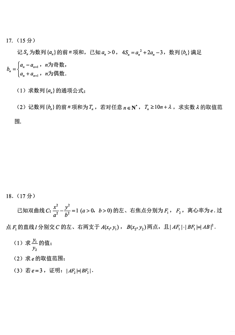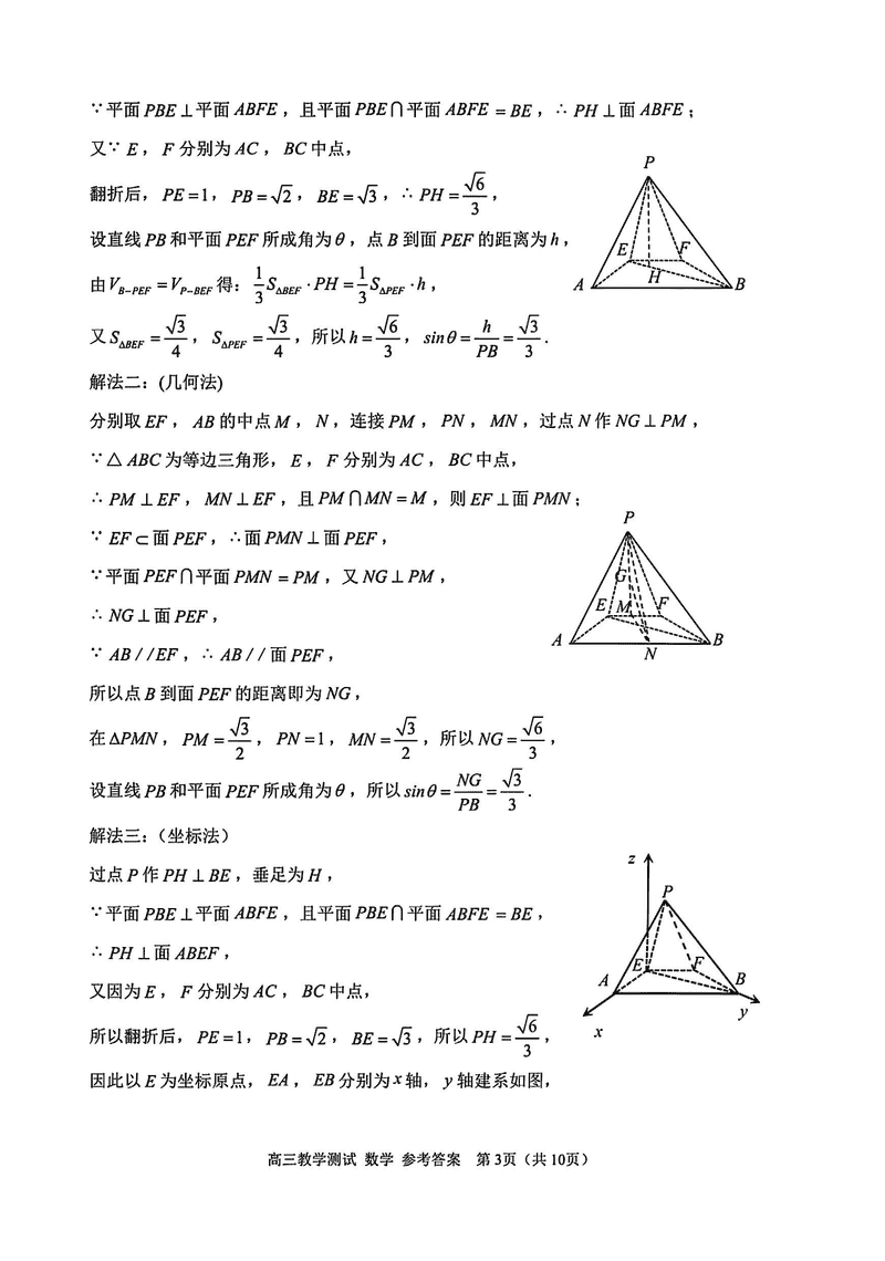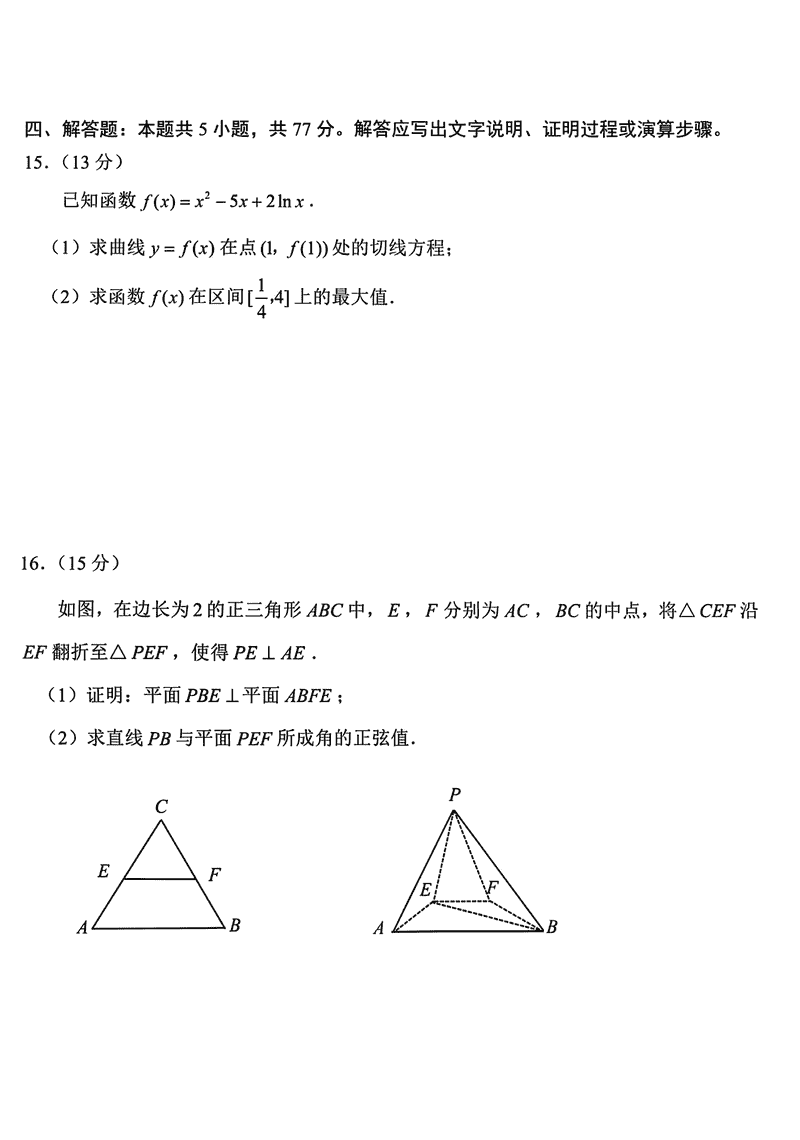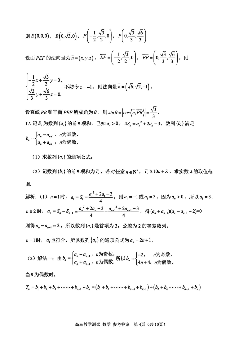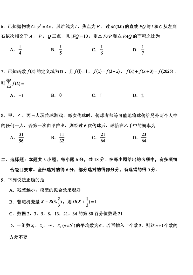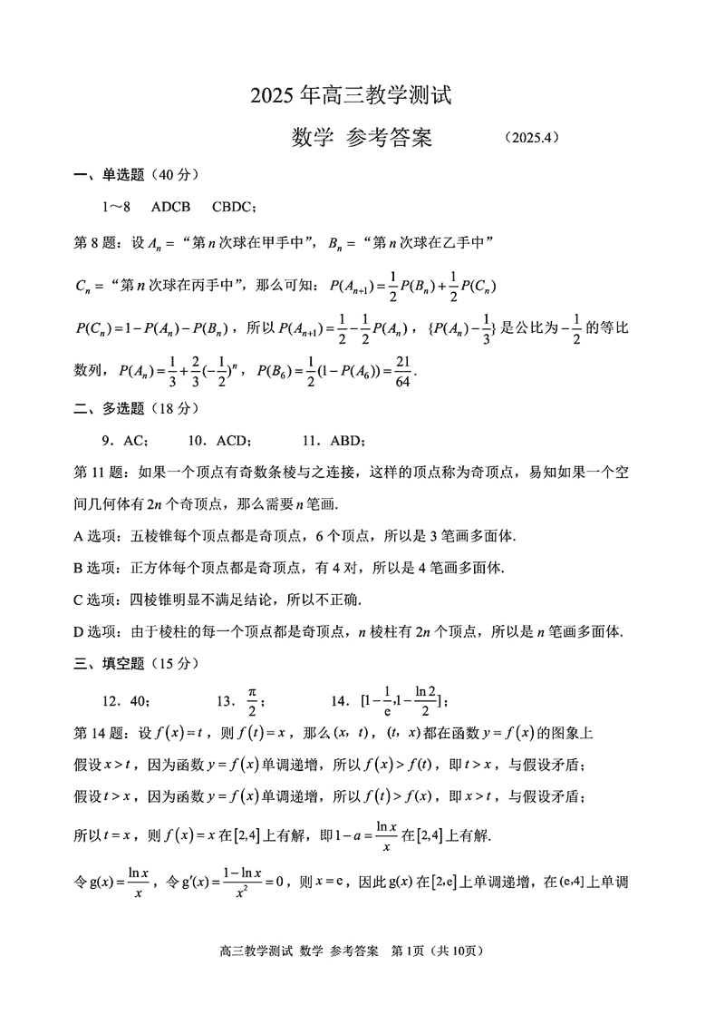 嘉兴二模2025届高三下学期4月教学测试数学试题及答案