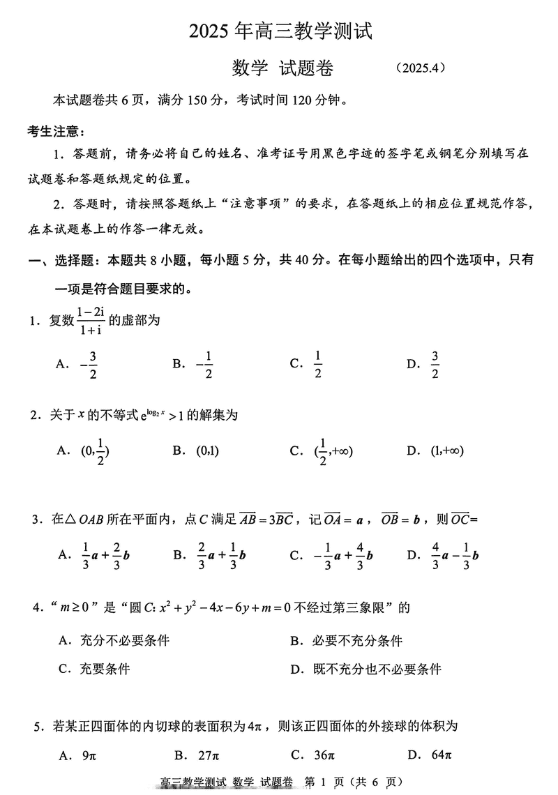 嘉兴二模2025届高三下学期4月教学测试数学考试已于近日开考,为方便考生考后及时查看考试情况,查漏补缺、弥补不足,本文整理了试题答案解析相关信息!