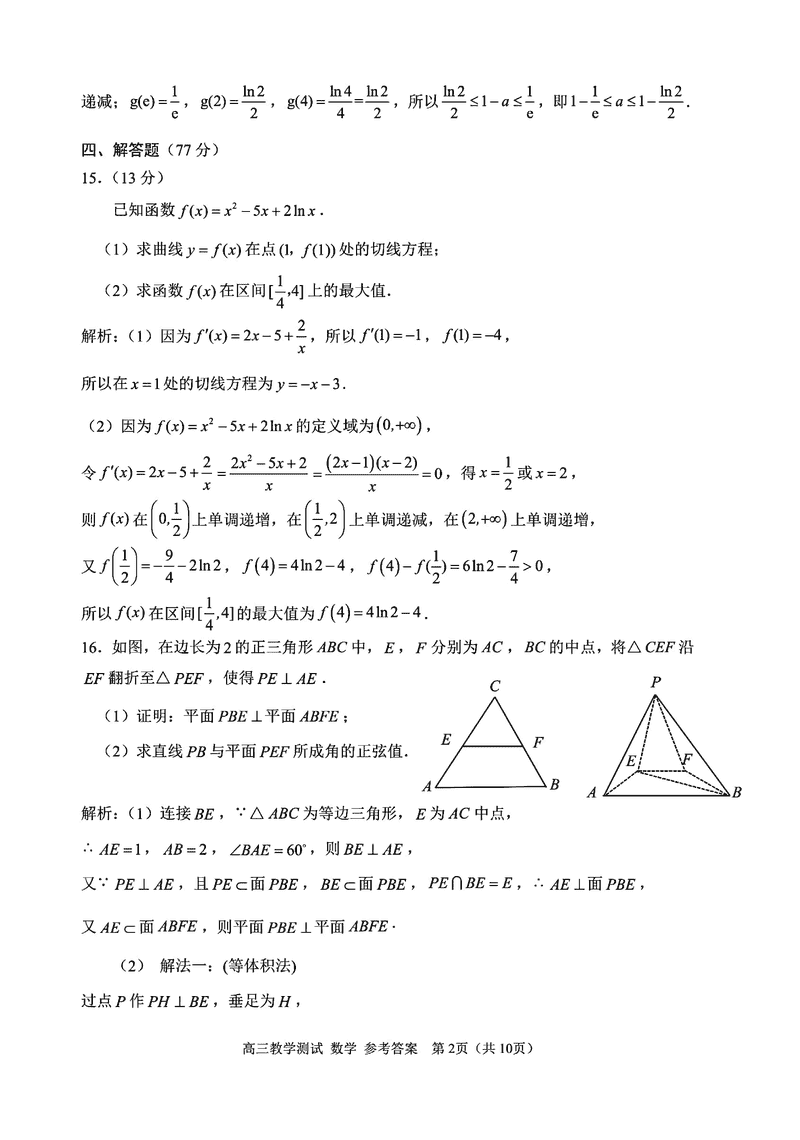 汇总:嘉兴二模2025届高三下学期4月教学测试试题及答案汇总