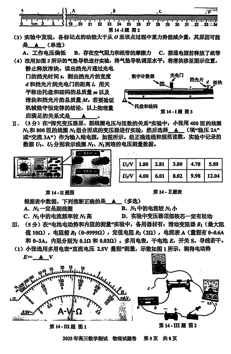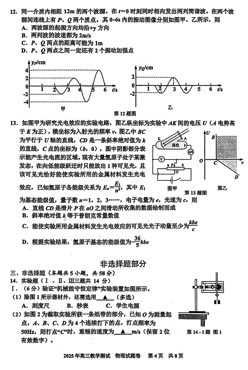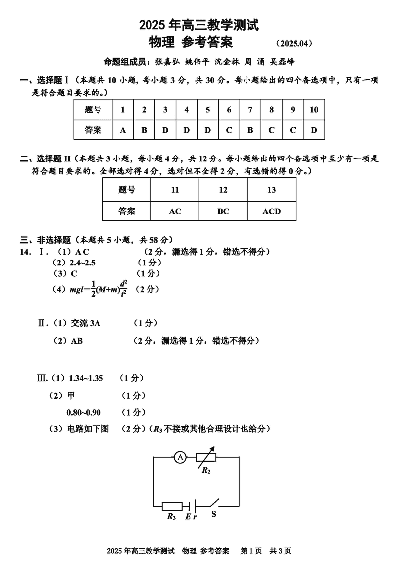 嘉兴二模2025届高三下学期4月教学测试物理考试已于近日开考,为方便考生考后及时查看考试情况,查漏补缺、弥补不足,本文整理了试题答案解析相关信息!