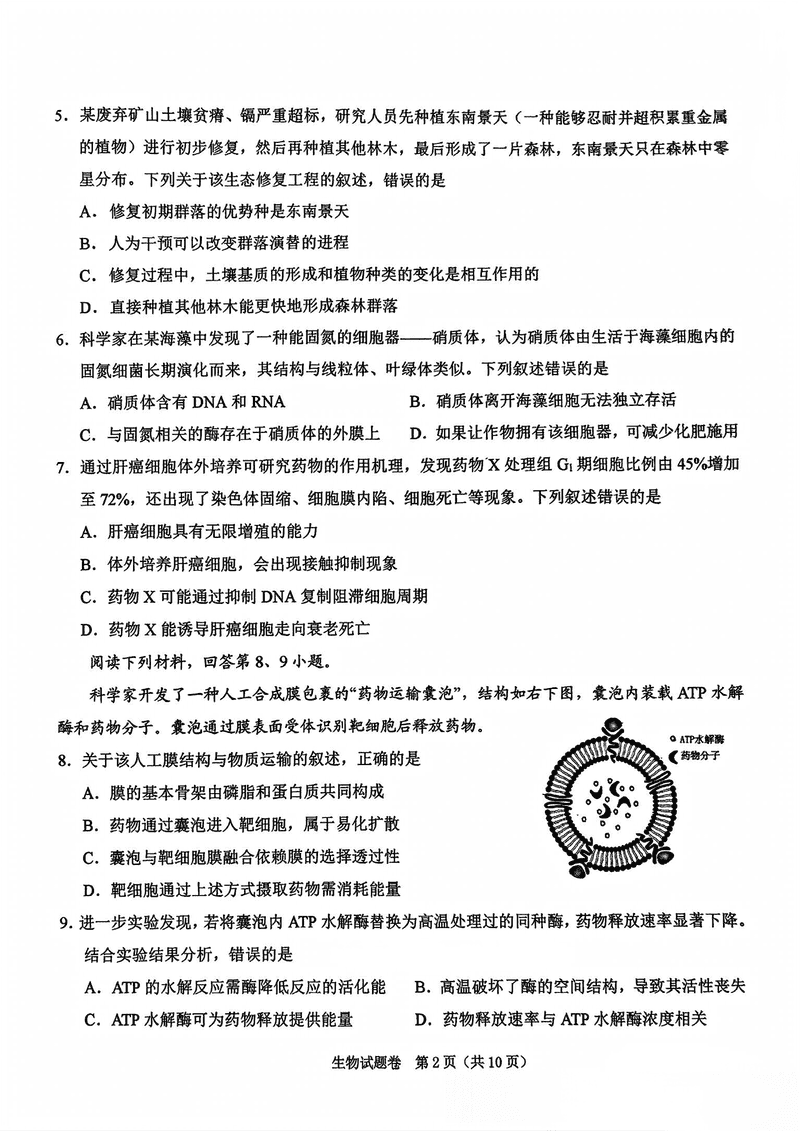 浙江绍兴2025年4月高三二模生物试题及答案 时间:2025-04-12 浙江 理综试题 浙江绍兴2025年4月高三二模生物考试已于近日开考,为方便考生考后及时查看考试情况,查漏补缺、弥补不足,本文整理了试题答案解析相关信息! 汇总:浙江绍兴2025年4月高三二模试题及答案汇总 生物试题及答案解析