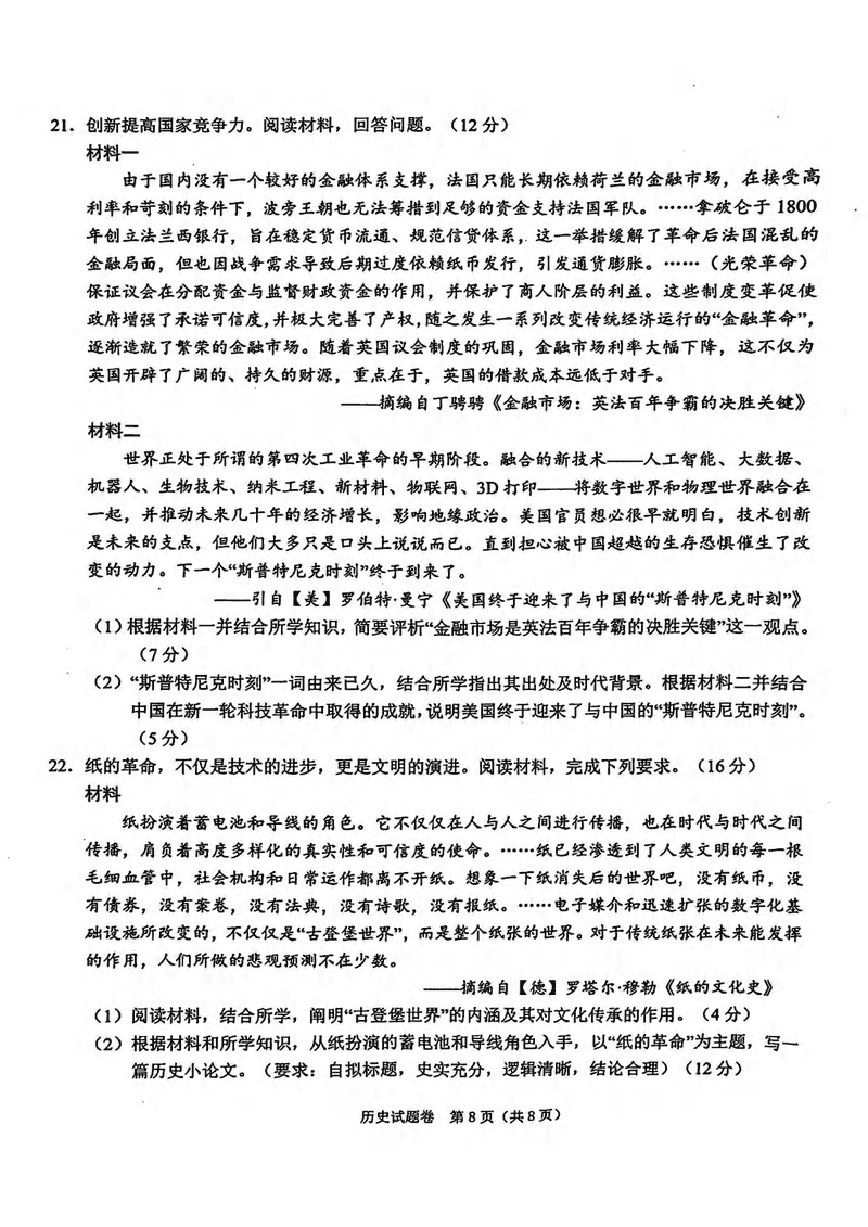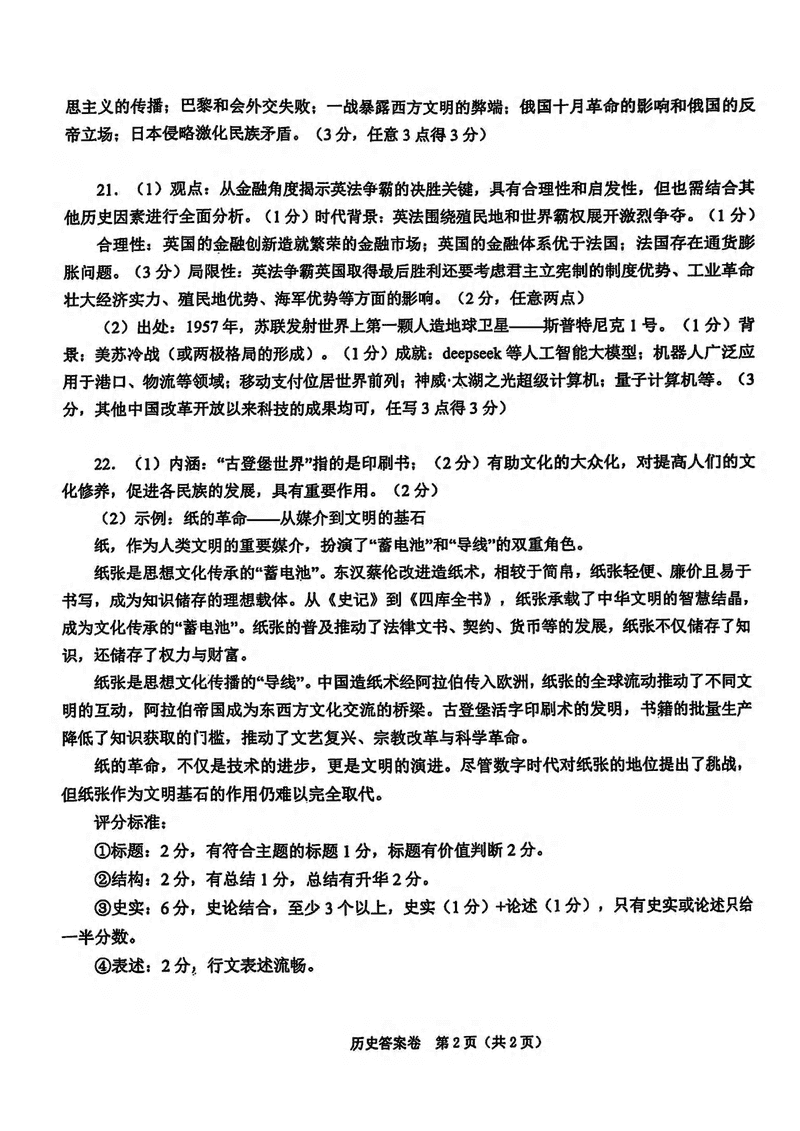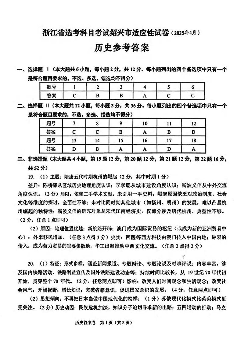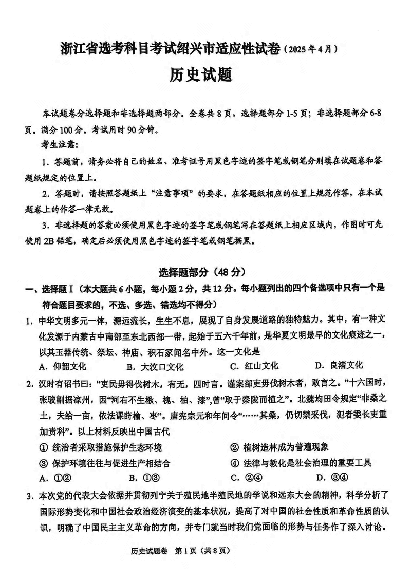 浙江绍兴2025年4月高三二模历史试题及答案 时间:2025-04-12 浙江 文综试题 浙江绍兴2025年4月高三二模历史考试已于近日开考,为方便考生考后及时查看考试情况,查漏补缺、弥补不足,本文整理了试题答案解析相关信息! 汇总:浙江绍兴2025年4月高三二模试题及答案汇总 历史试题及答案解析