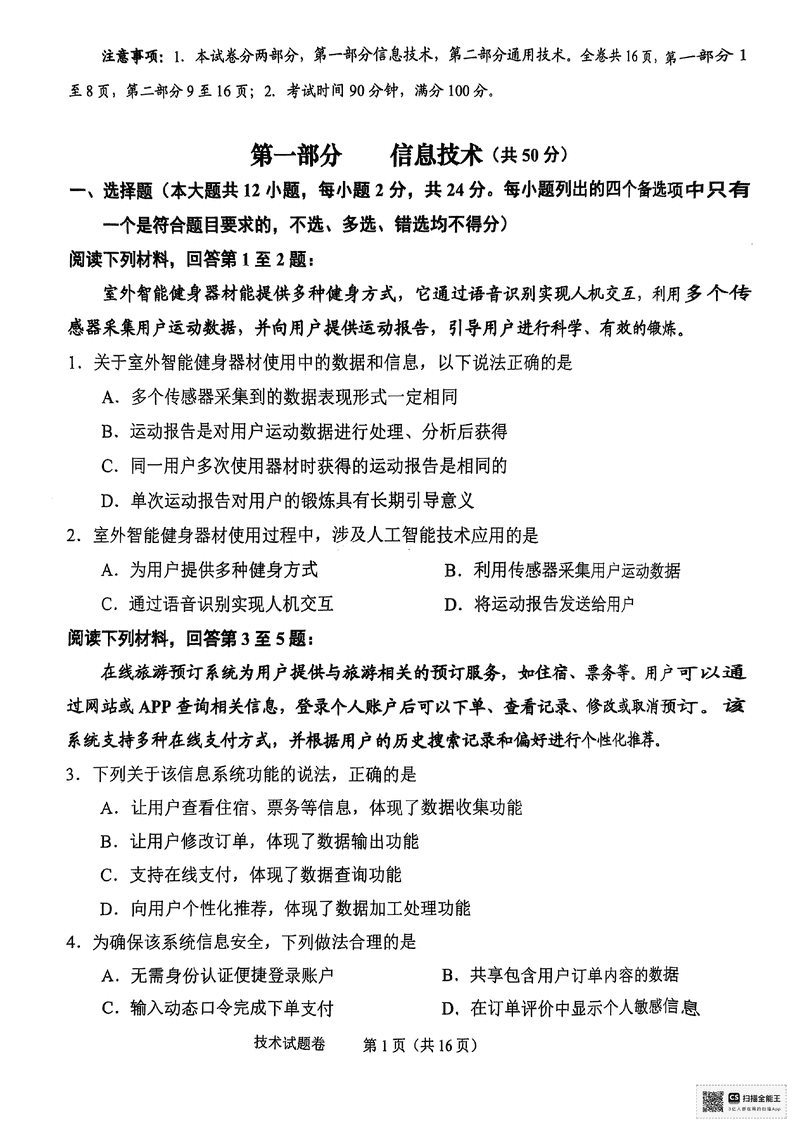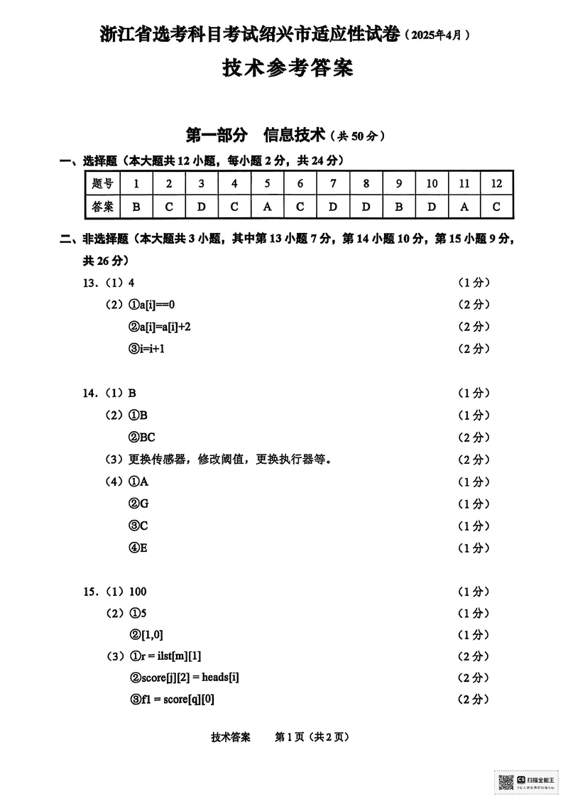 浙江绍兴2025年4月高三二模技术试题及答案 时间:2025-04-12 浙江 理综试题 浙江绍兴2025年4月高三二模技术考试已于近日开考,为方便考生考后及时查看考试情况,查漏补缺、弥补不足,本文整理了试题答案解析相关信息! 汇总:浙江绍兴2025年4月高三二模试题及答案汇总 技术试题及答案解析