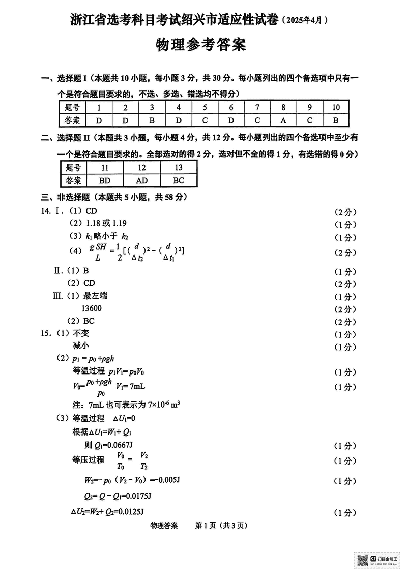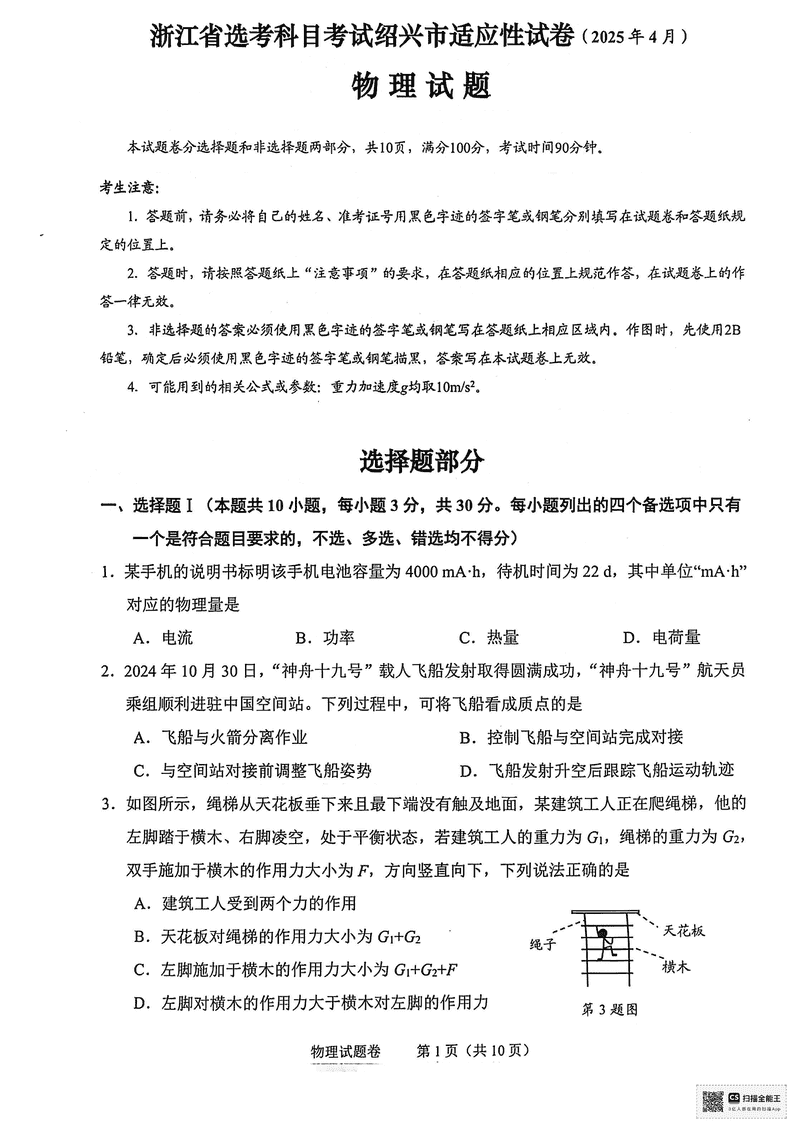 浙江绍兴2025年4月高三二模物理试题及答案 时间:2025-04-12 浙江 理综试题 浙江绍兴2025年4月高三二模物理考试已于近日开考,为方便考生考后及时查看考试情况,查漏补缺、弥补不足,本文整理了试题答案解析相关信息! 汇总:浙江绍兴2025年4月高三二模试题及答案汇总 物理试题及答案解析