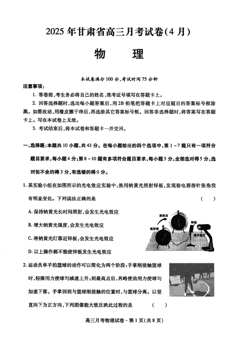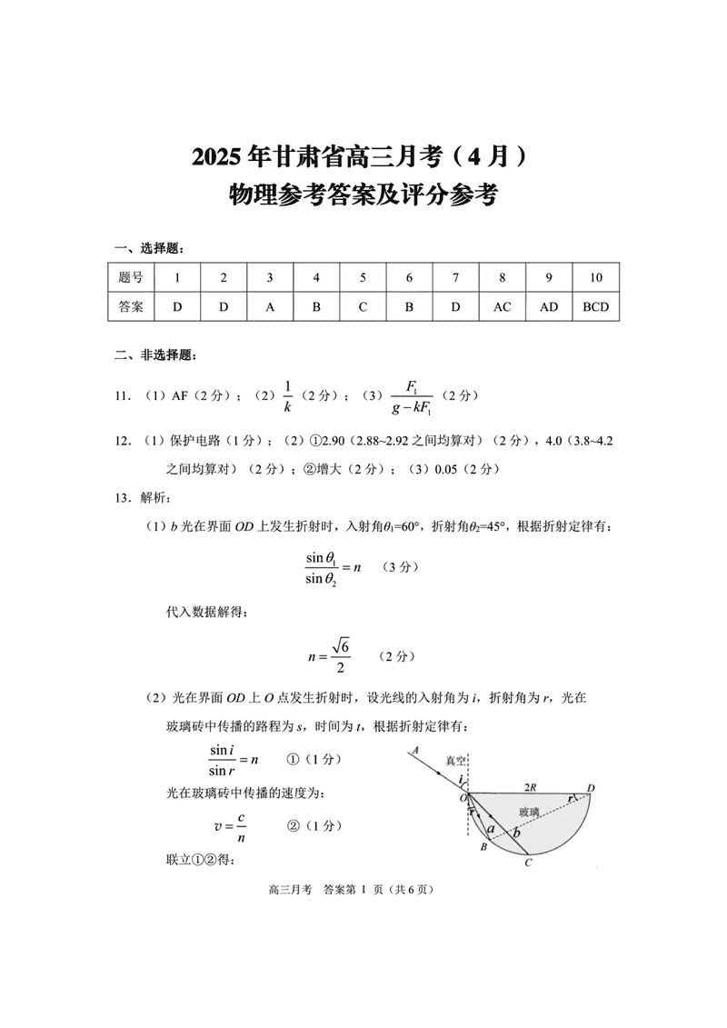 甘肃二诊2025年高三4月月考物理试题及答案 时间:2025-04-12 甘肃 理综试题 甘肃二诊2025年高三4月月考物理考试已于近日开考,为方便考生考后及时查看考试情况,查漏补缺、弥补不足,本文整理了试题答案解析相关信息! 汇总:甘肃二诊2025年高三4月联考试题及答案汇总 物理试题及答案解析