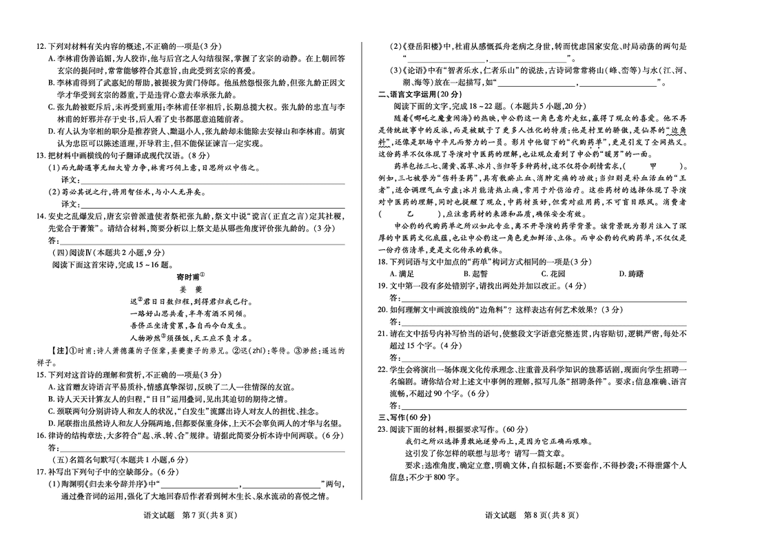 陕西山西天一小高考2025年(下)高三第三次语文考试已于近日开考,为方便考生考后及时查看考试情况,查漏补缺、弥补不足,本文整理了试题答案解析相关信息!