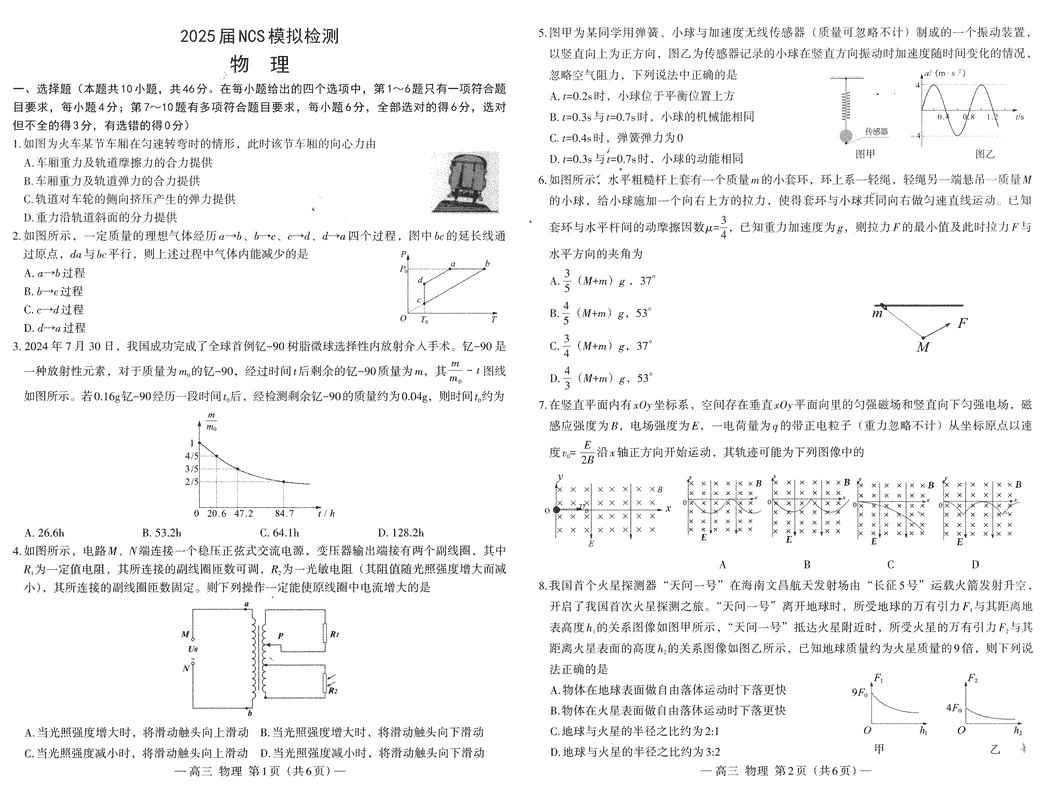 南昌二模2025届NCS模拟检测物理试题及答案 时间:2025-04-12 江西 理综试题 南昌二模2025届NCS模拟检测物理考试已于近日开考,为方便考生考后及时查看考试情况,查漏补缺、弥补不足,本文整理了试题答案解析相关信息! 汇总:南昌二模2025届NCS模拟检测试题及答案汇总 物理试题及答案解析