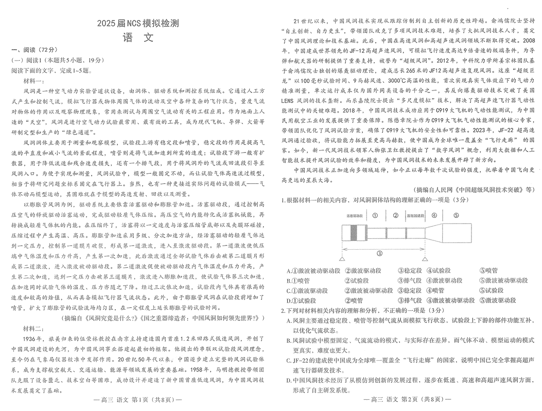 南昌二模2025届NCS模拟检测语文试题及答案 时间:2025-04-12 江西 语文试题 南昌二模2025届NCS模拟检测语文考试已于近日开考,为方便考生考后及时查看考试情况,查漏补缺、弥补不足,本文整理了试题答案解析相关信息! 汇总:南昌二模2025届NCS模拟检测试题及答案汇总 语文试题及答案解析