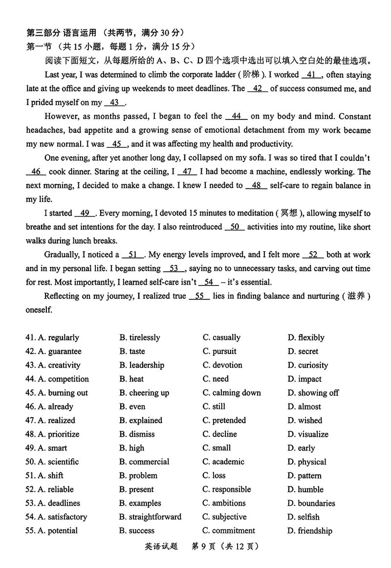 福建2025年4月高三九市联考英语试题及答案 时间:2025-04-12 福建 英语试题 福建2025年4月高三九市联考英语考试已于近日开考,为方便考生考后及时查看考试情况,查漏补缺、弥补不足,本文整理了试题答案解析相关信息! 汇总:福建2025年4月高三九市联考试题及答案汇总 英语试题及答案解析