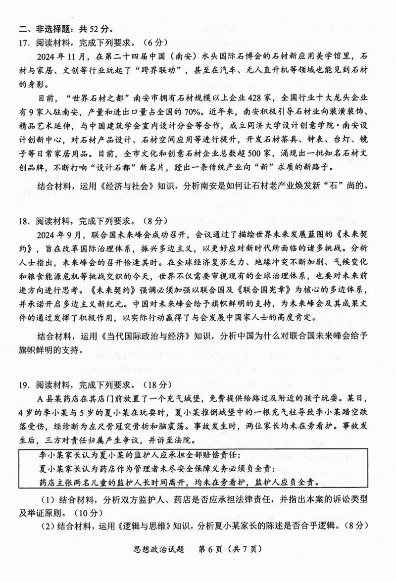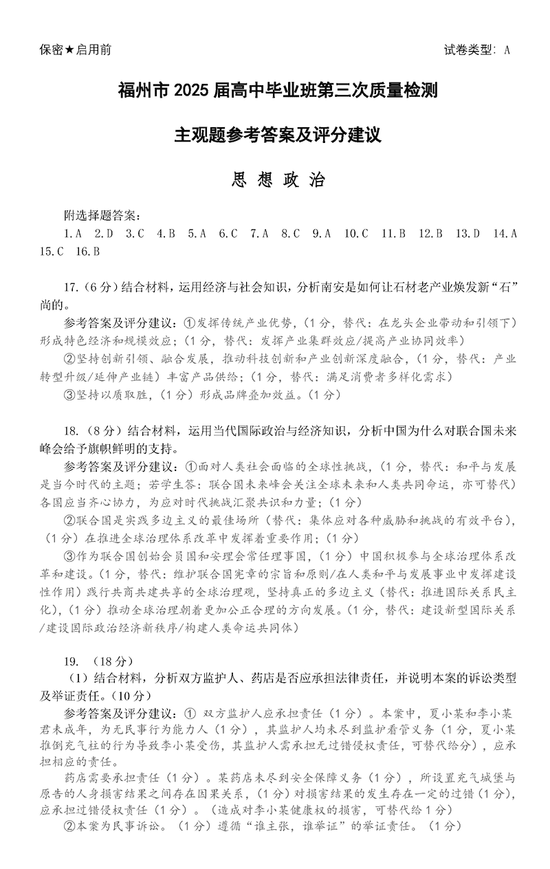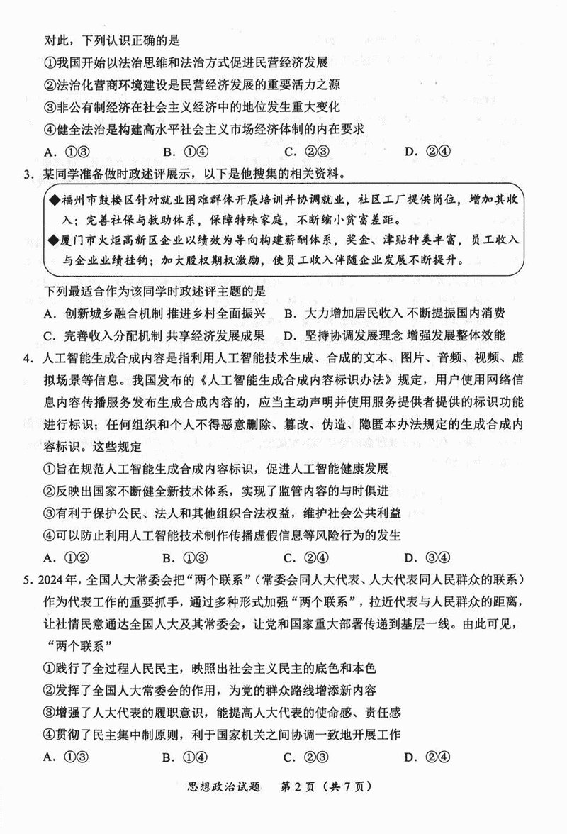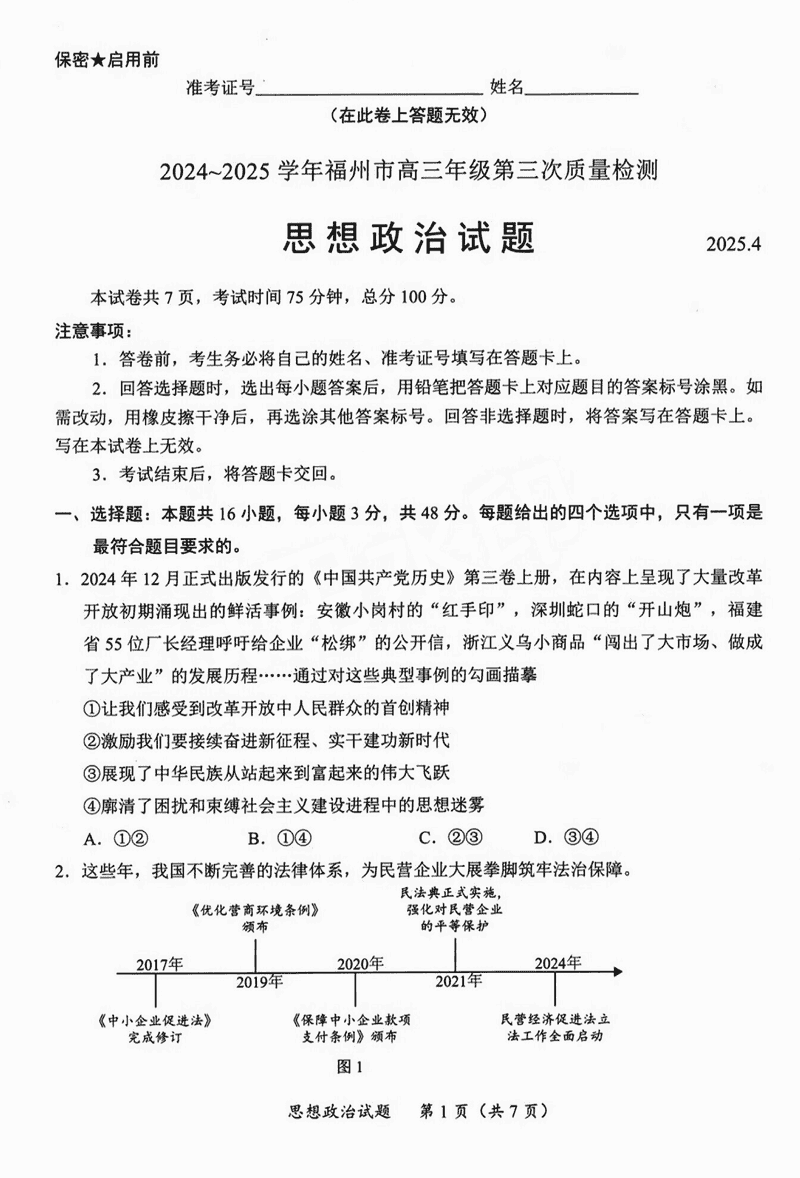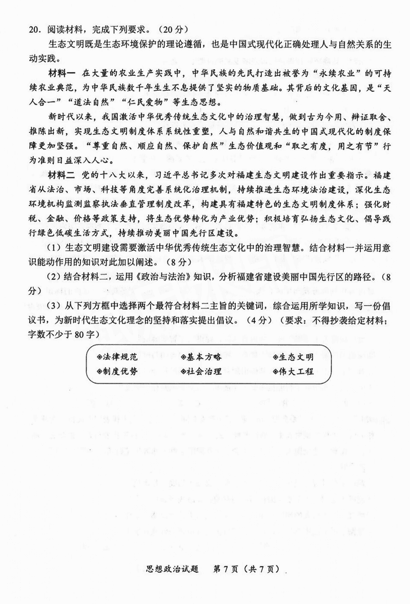 福建2025年4月高三九市联考政治试题及答案 时间:2025-04-12 福建 文综试题 福建2025年4月高三九市联考政治考试已于近日开考,为方便考生考后及时查看考试情况,查漏补缺、弥补不足,本文整理了试题答案解析相关信息! 汇总:福建2025年4月高三九市联考试题及答案汇总 政治试题及答案解析