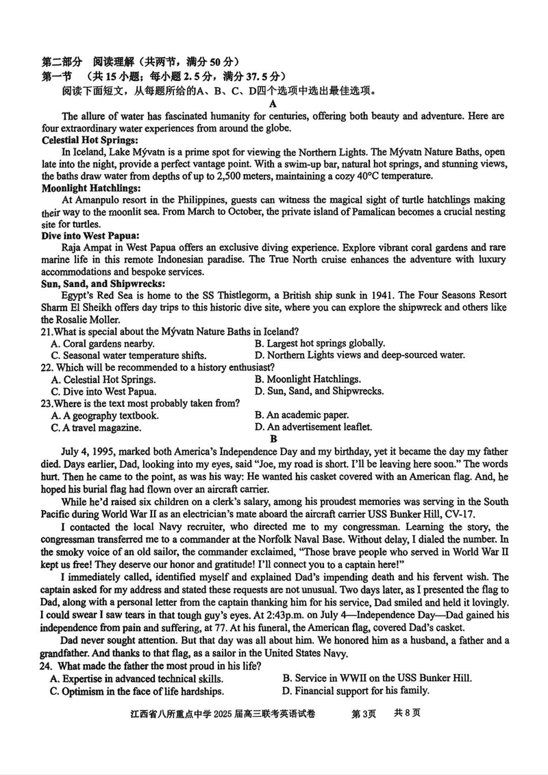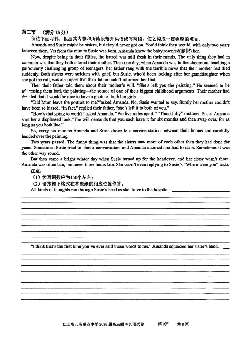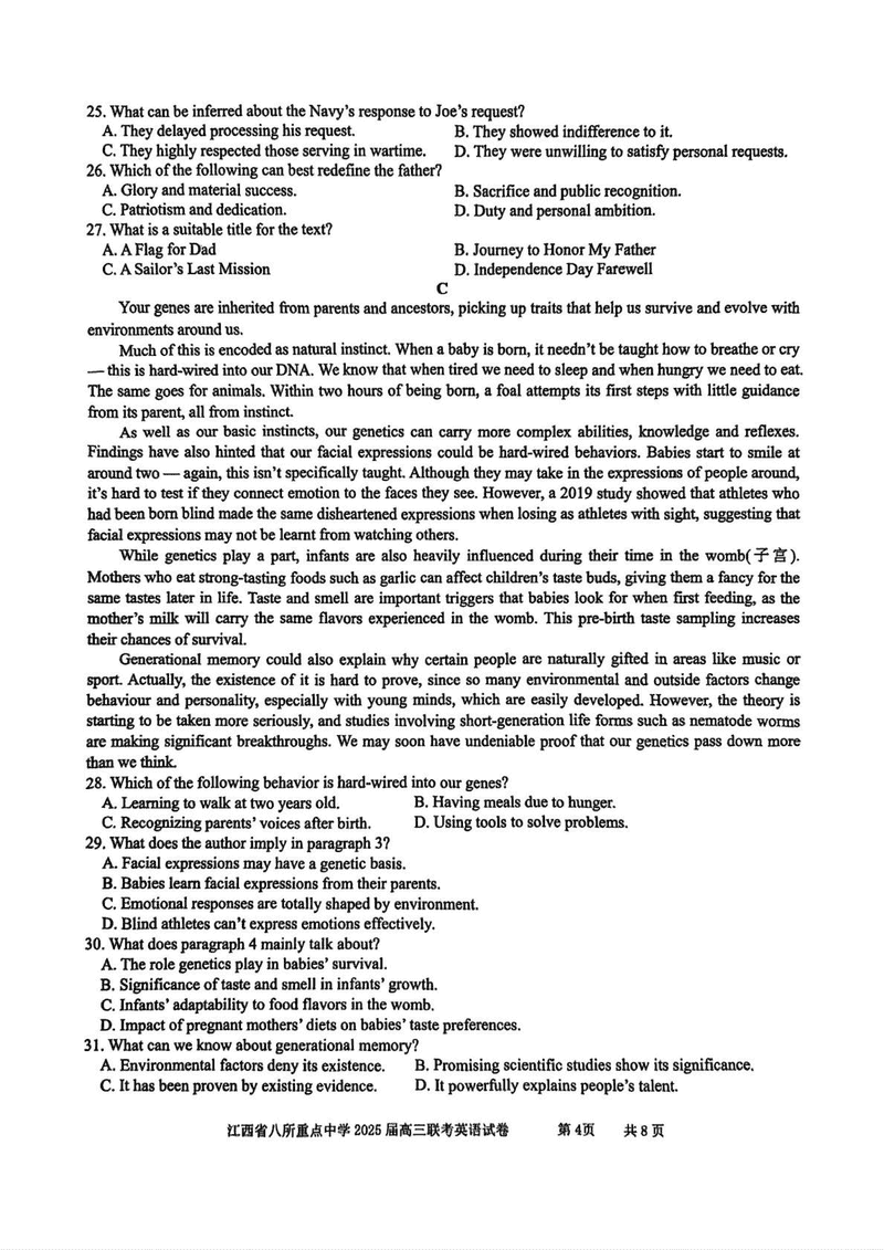 江西省八所重点中学2025届高三4月联考英语试题及答案