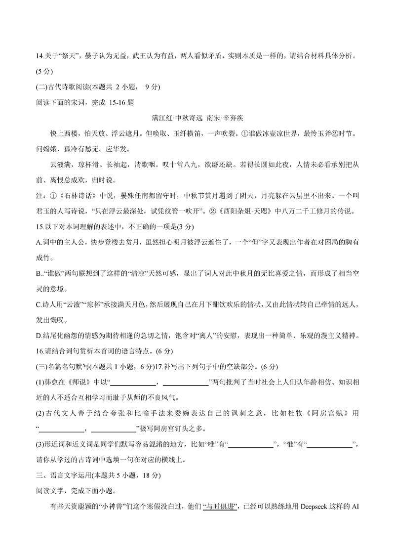 江西省八所重点中学2025届高三4月联考语文试题及答案