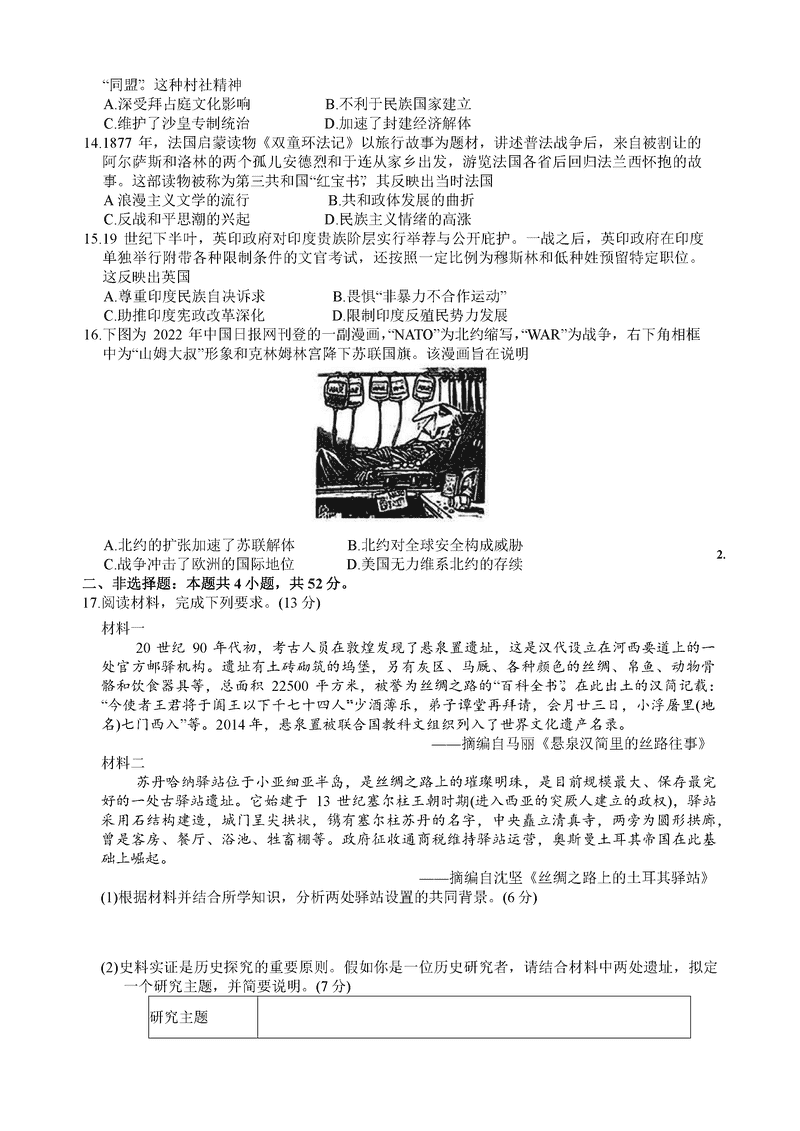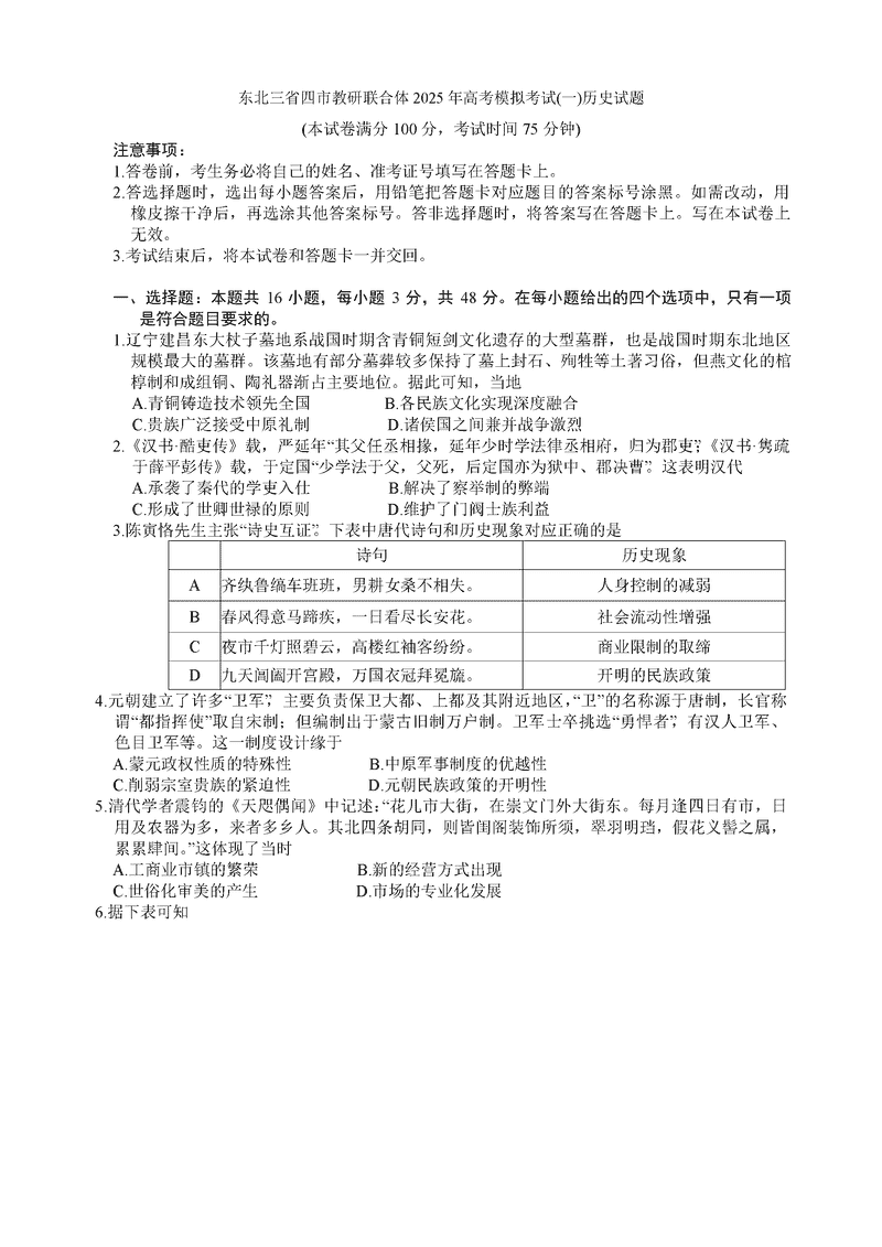 2025年东北三省四市教研联合体高考模拟考试(一)历史试题及答案