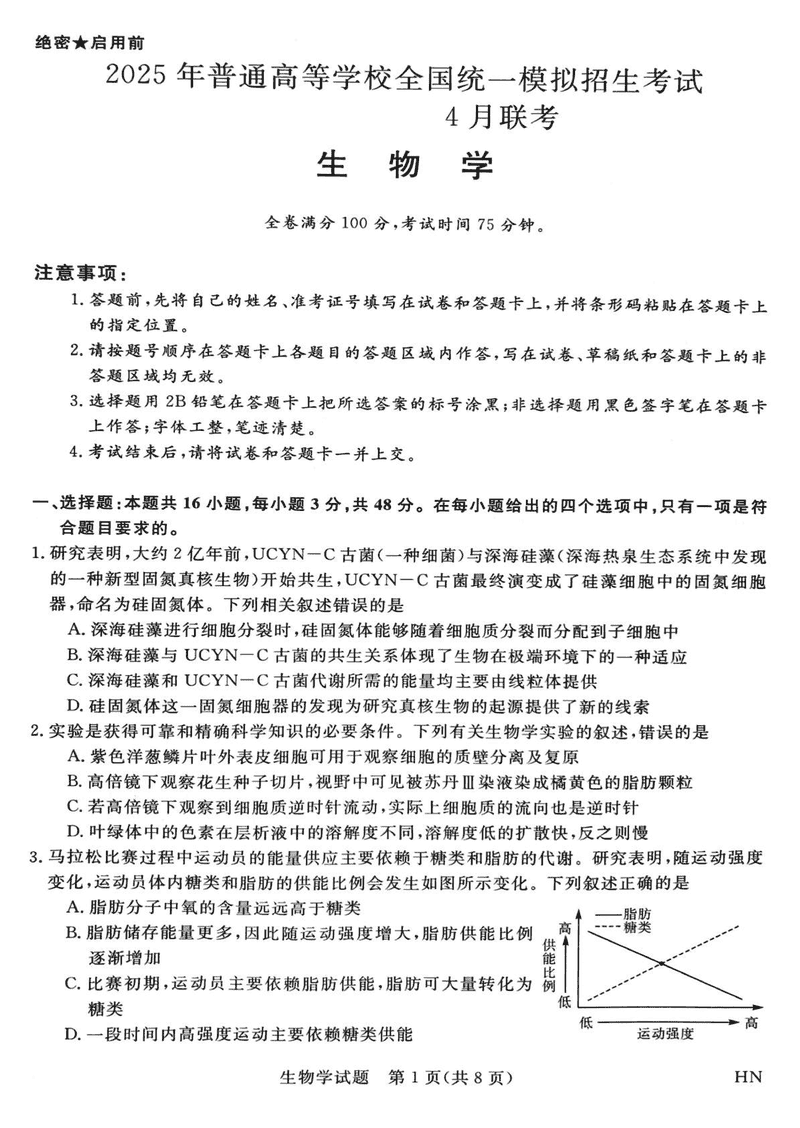2025届河南省金科新未来联考高三下学期4月模拟预测生物试题及答案