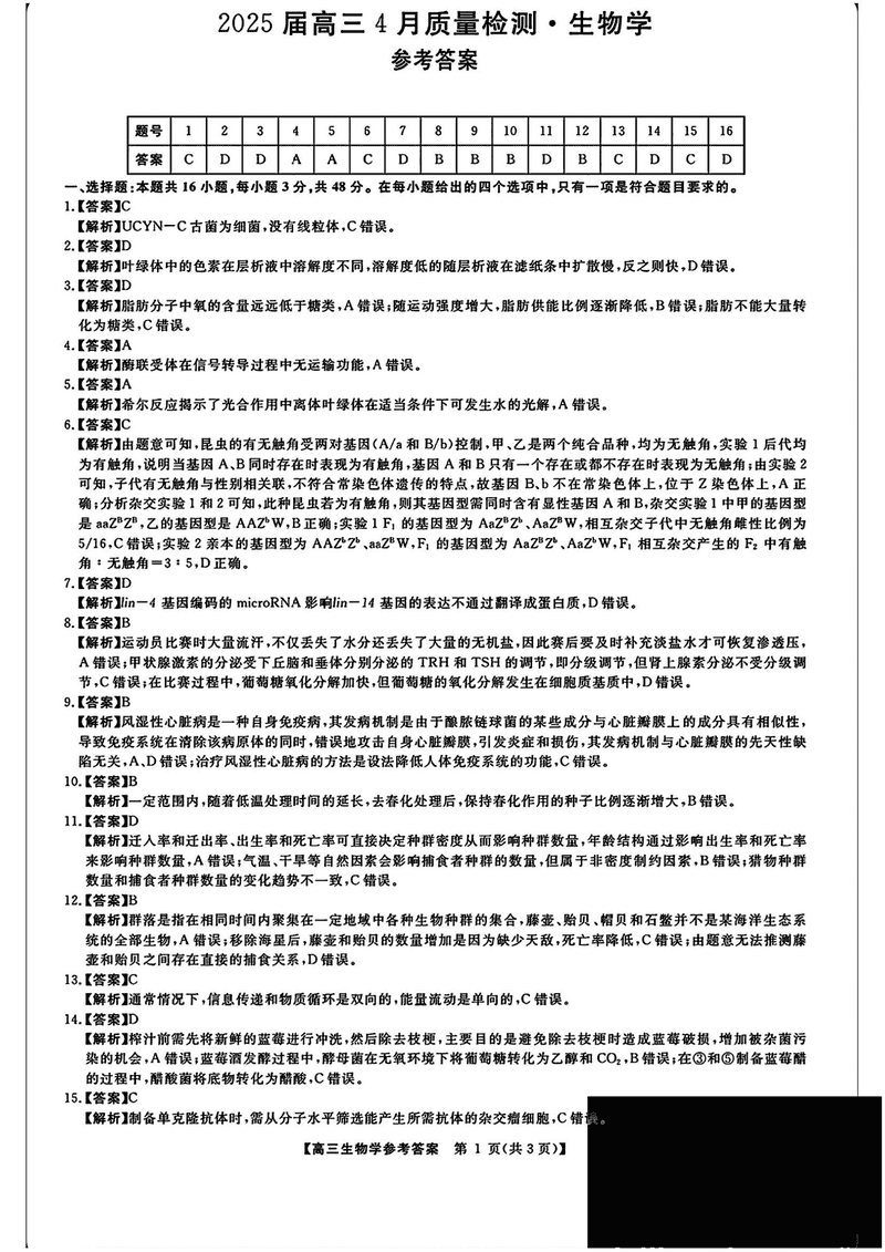 生物试题及答案解析