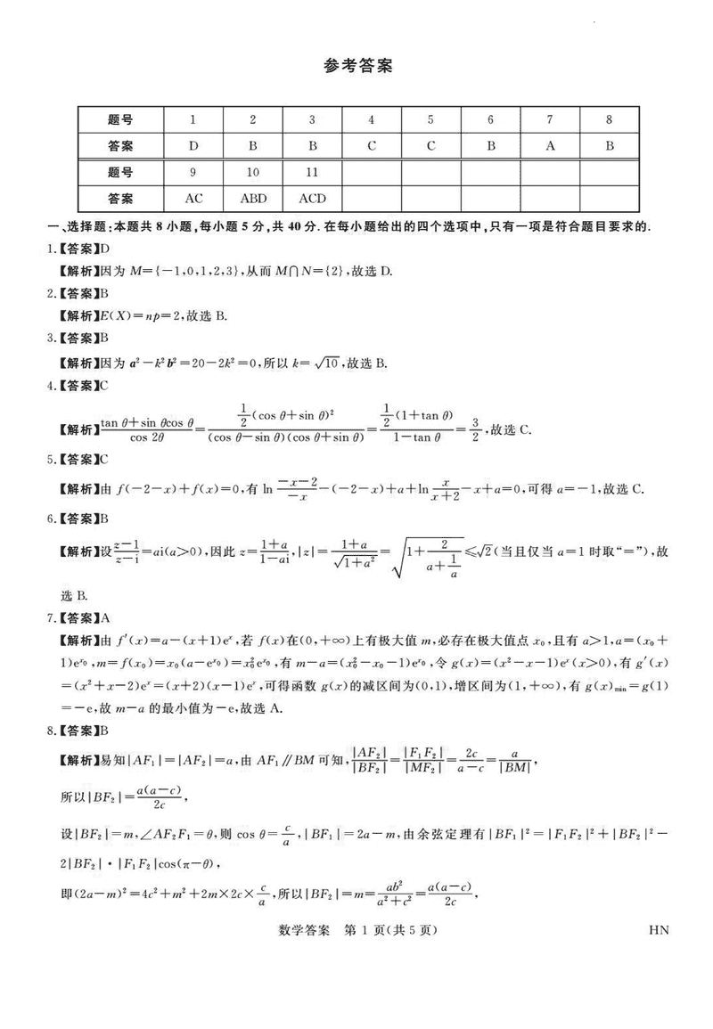 数学试题及答案解析