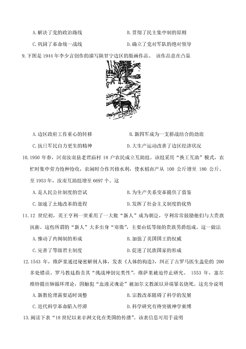 2025届河南省金科新未来联考高三下学期4月模拟预测历史试题及答案