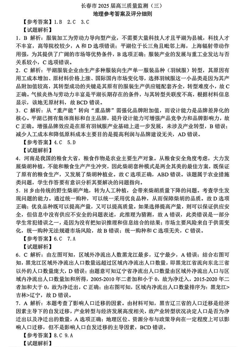 吉林长春2025届高三下学期质量监测(三)地理考试已于近日开考,为方便考生考后及时查看考试情况,查漏补缺、弥补不足,本文整理了试题答案解析相关信息!