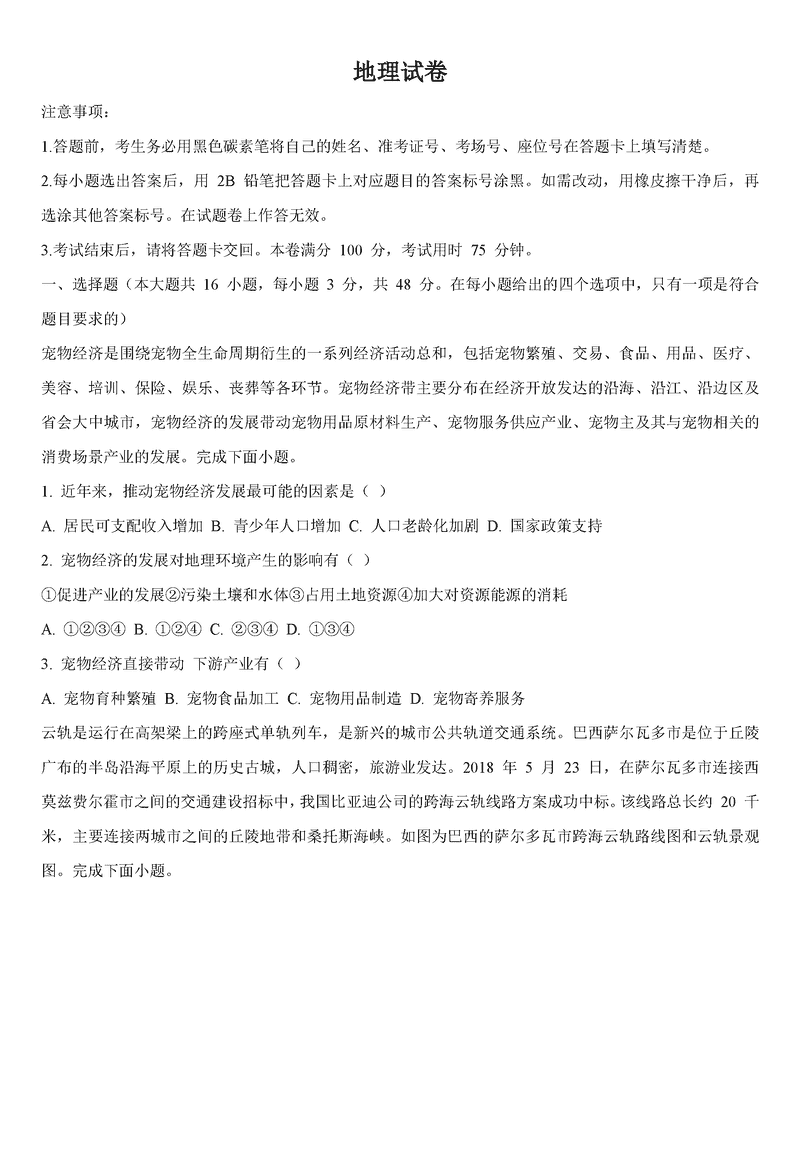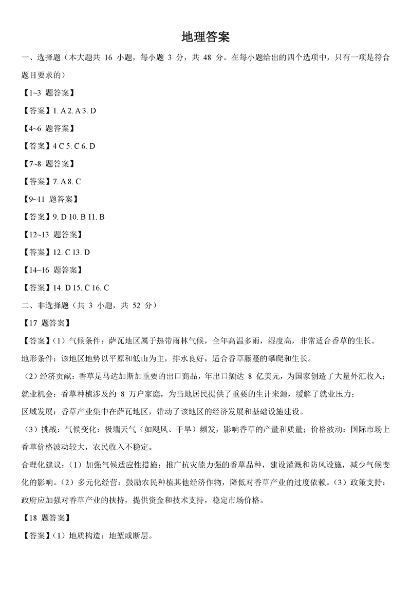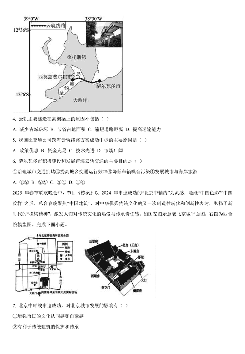 贵阳市七校2025届高三下学期联考(三)地理试题及答案