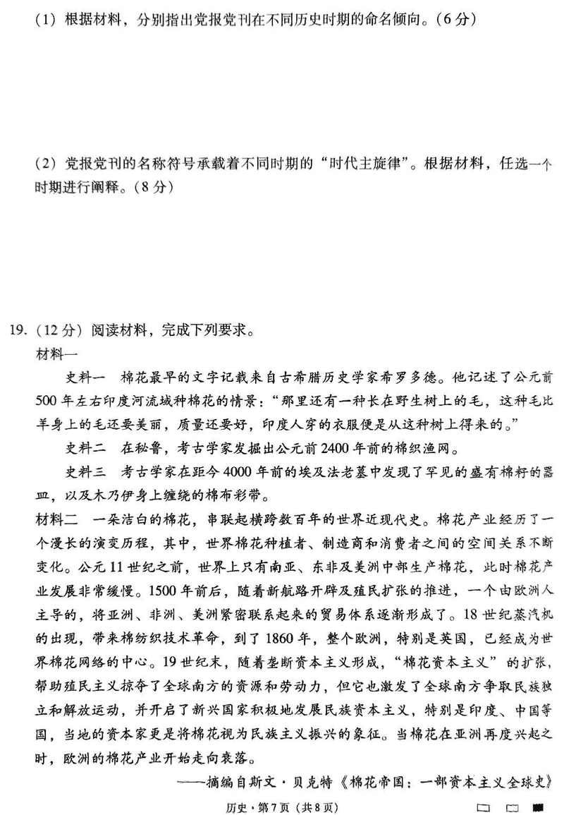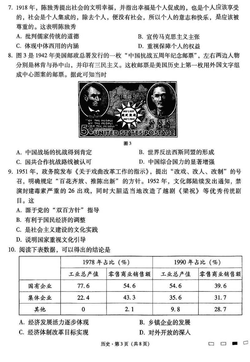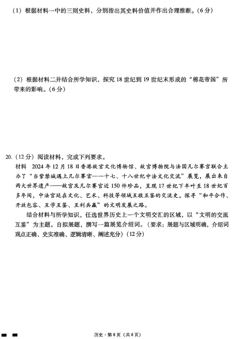 贵阳市七校2025届高三下学期联考(三)历史试题及答案