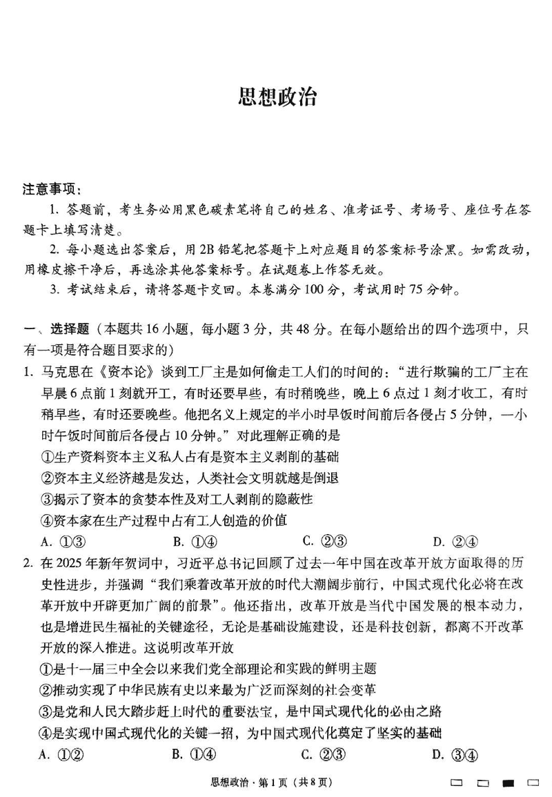 贵阳市七校2025届高三下学期联考(三)政治考试已于近日开考,为方便考生考后及时查看考试情况,查漏补缺、弥补不足,本文整理了试题答案解析相关信息!
