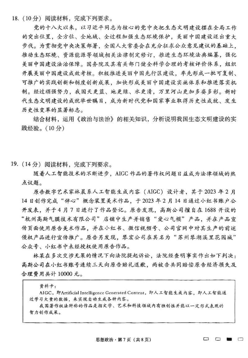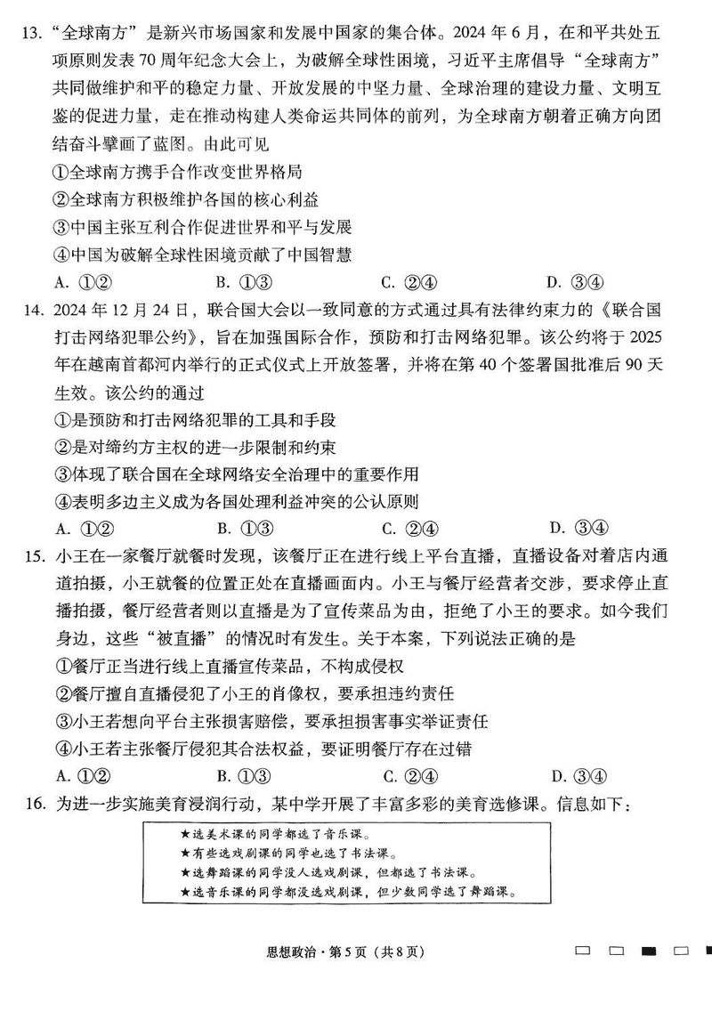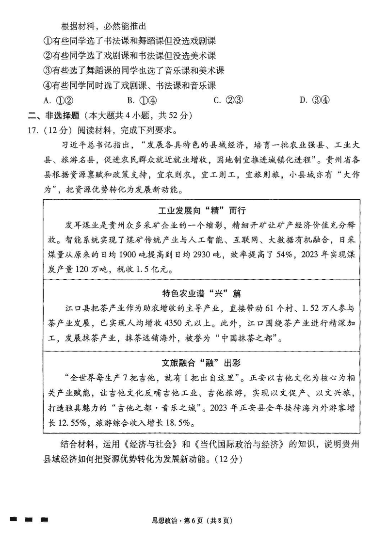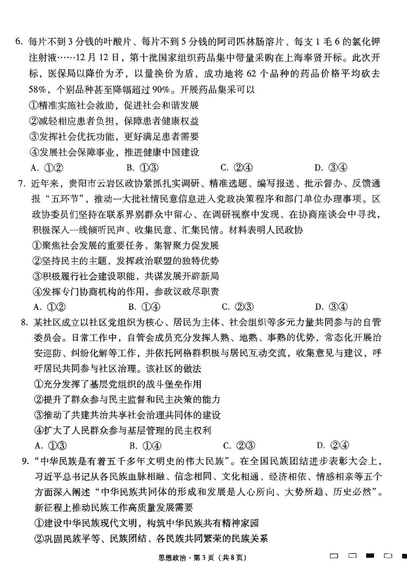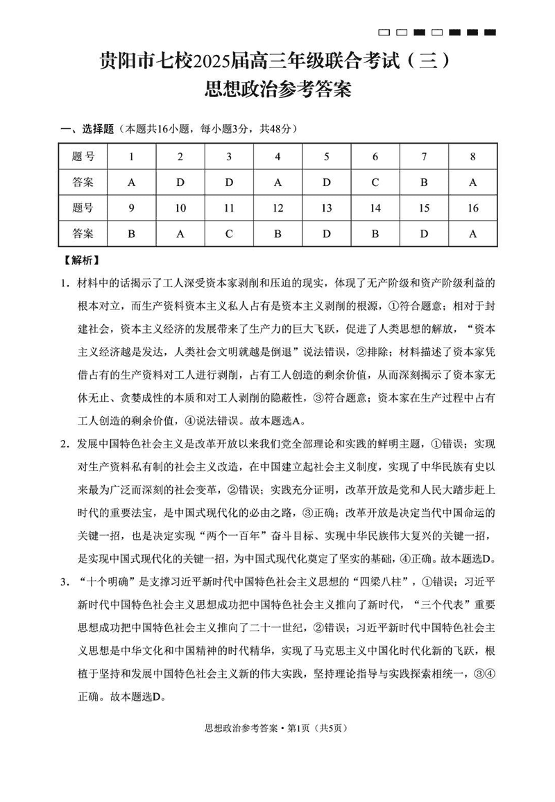贵阳市七校2025届高三下学期联考(三)政治试题及答案