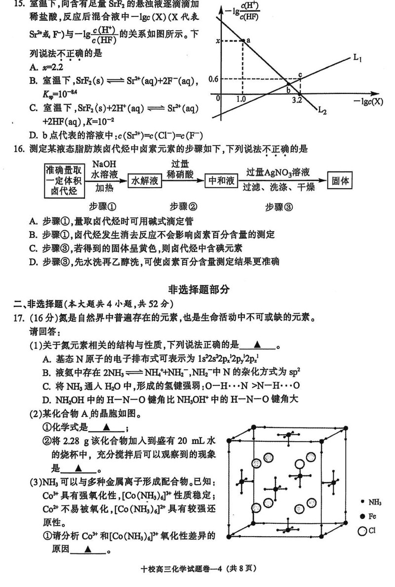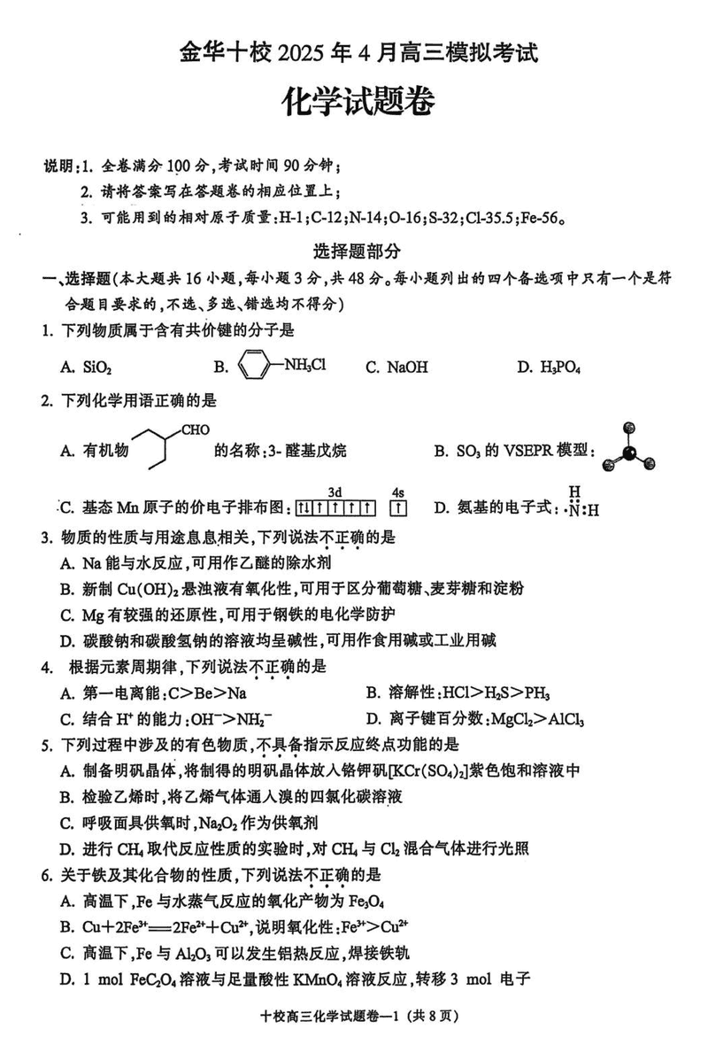 浙江省金华十校2025年4月高三模考化学考试已于近日开考,为方便考生考后及时查看考试情况,查漏补缺、弥补不足,本文整理了试题答案解析相关信息!