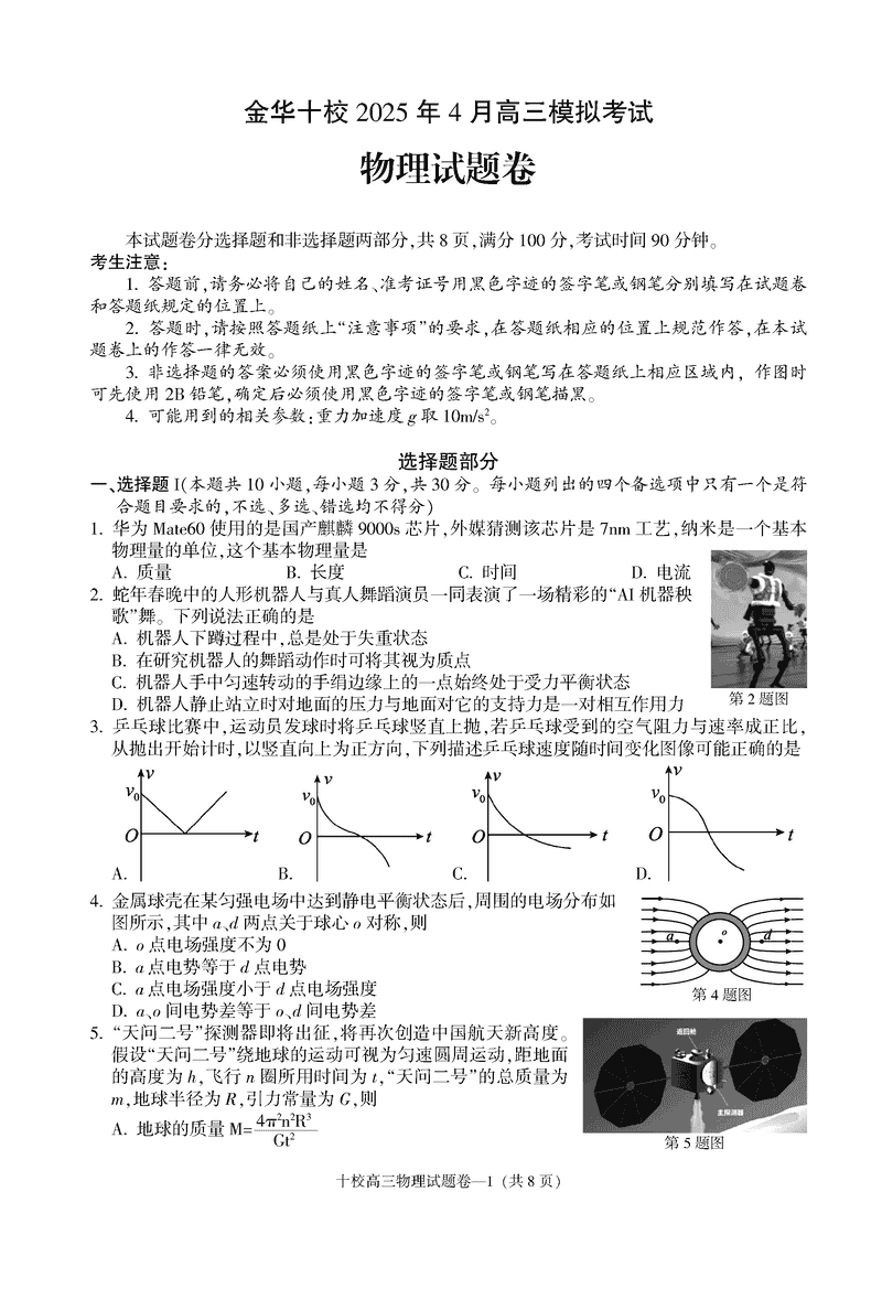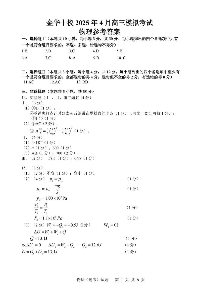 浙江省金华十校2025年4月高三模考物理考试已于近日开考,为方便考生考后及时查看考试情况,查漏补缺、弥补不足,本文整理了试题答案解析相关信息!