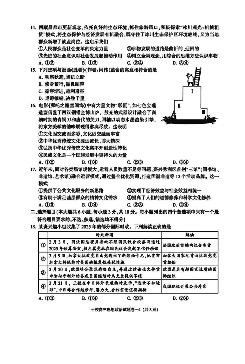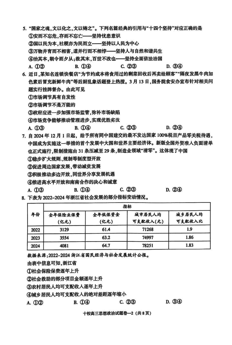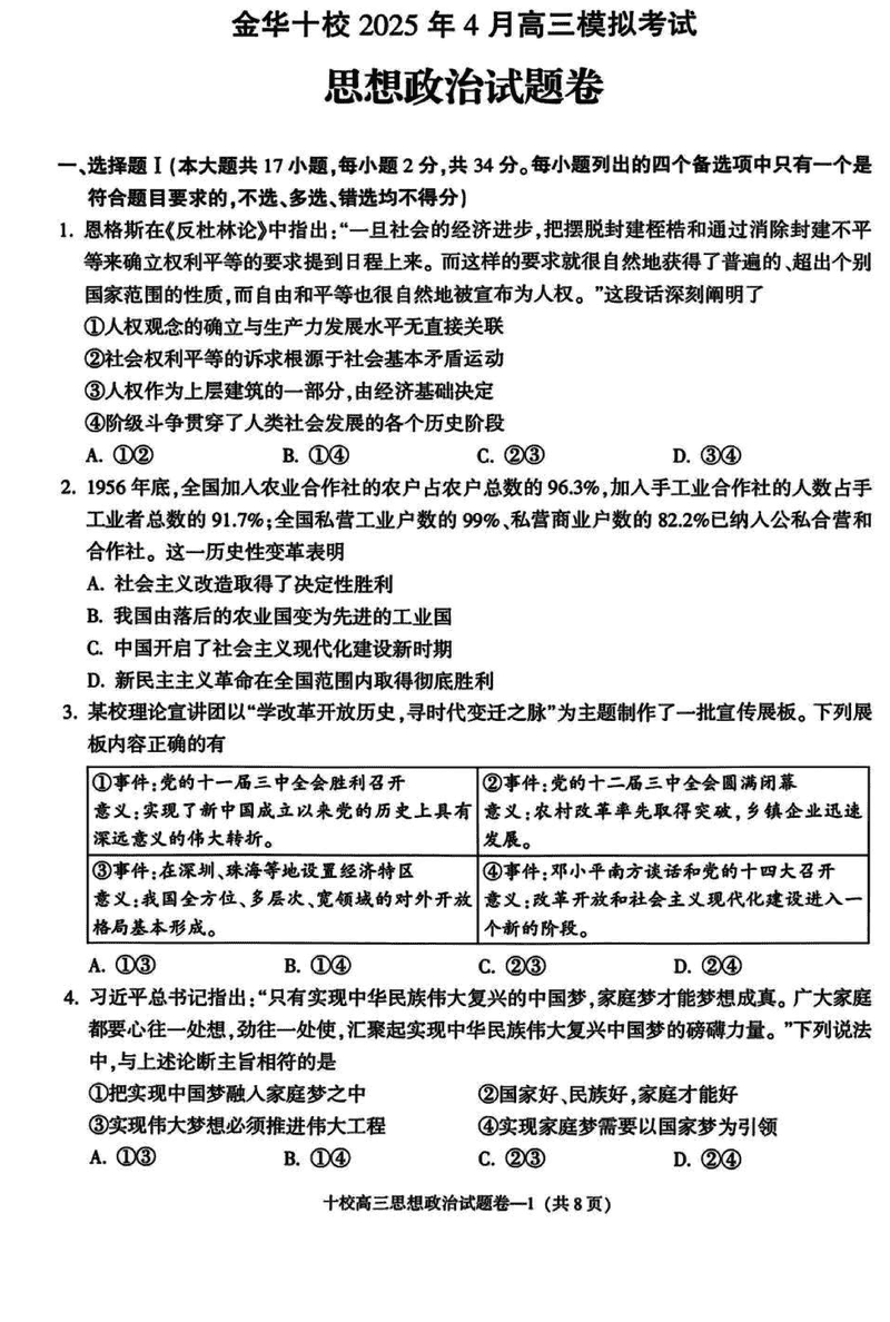 浙江金华十校2025年4月高三模考政治试题及答案
