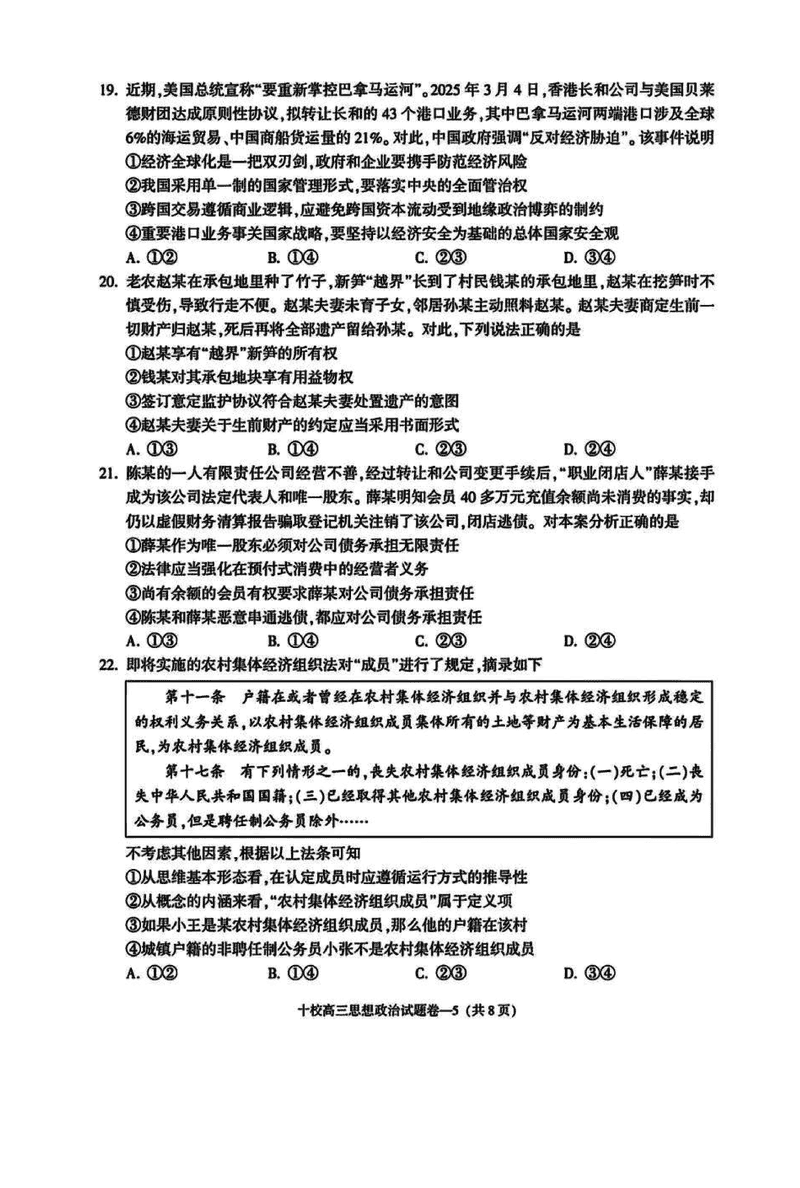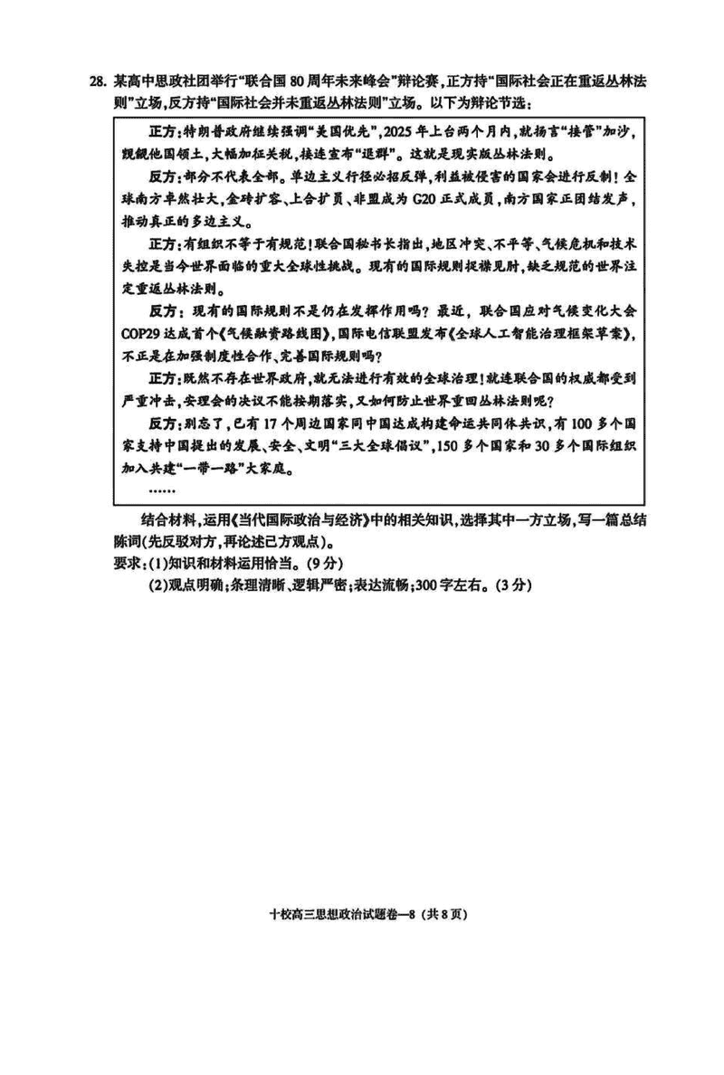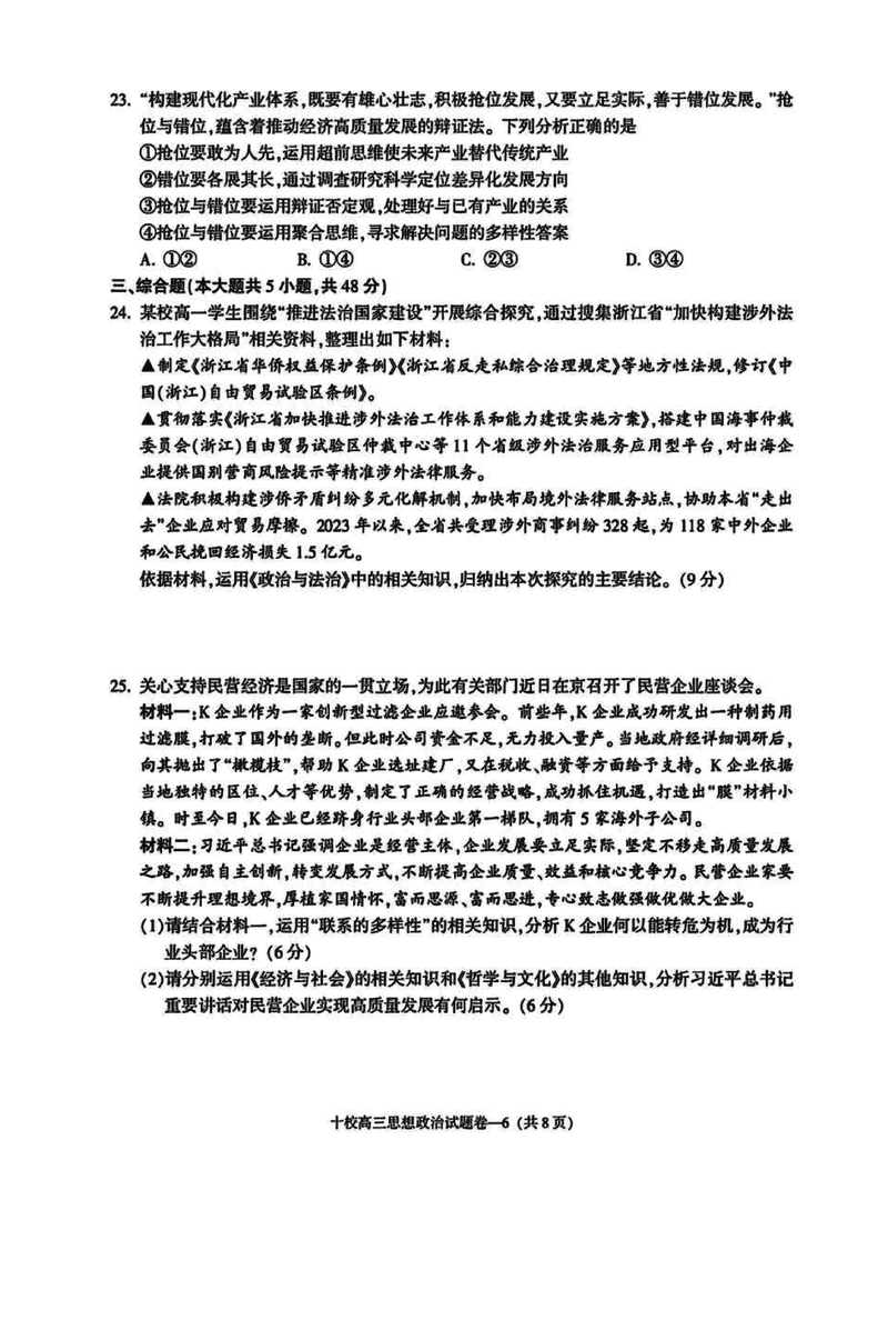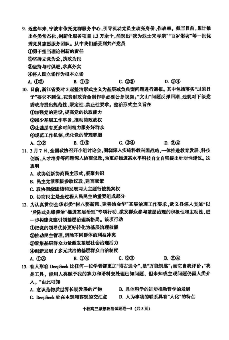 浙江金华十校2025年4月高三模考政治试题及答案