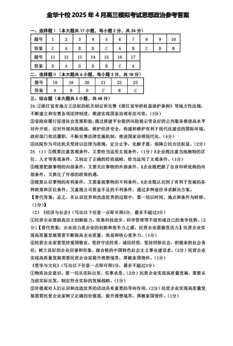 浙江省金华十校2025年4月高三模考政治考试已于近日开考,为方便考生考后及时查看考试情况,查漏补缺、弥补不足,本文整理了试题答案解析相关信息!