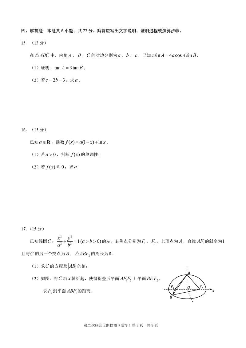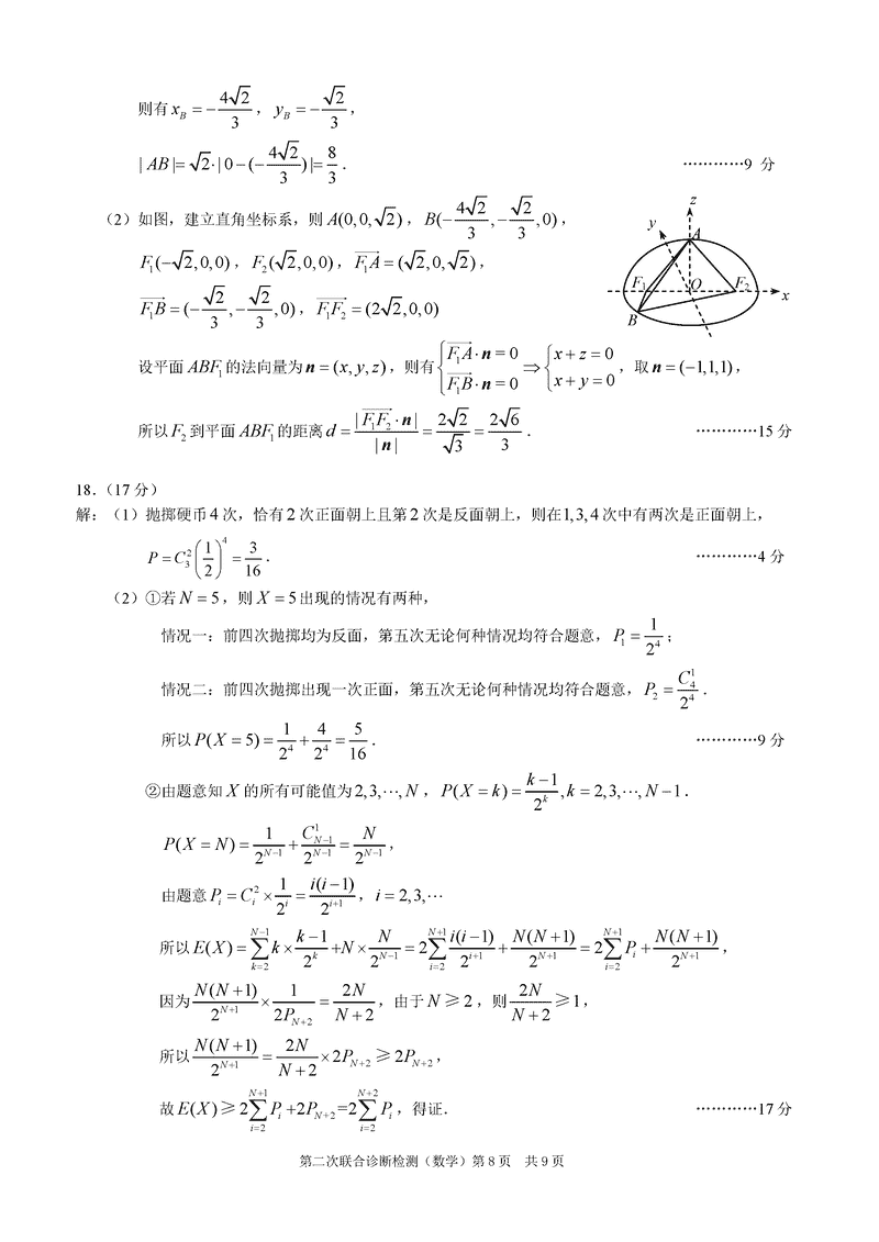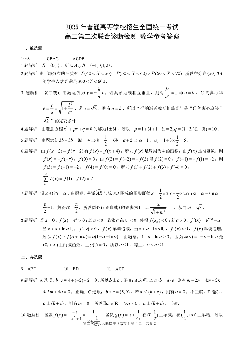 重庆康德二诊2025年高三第二次联合诊断数学试题及答案
