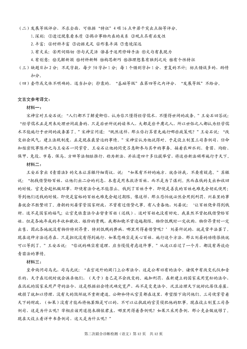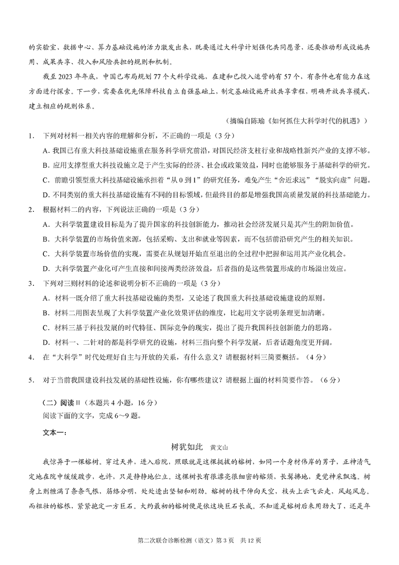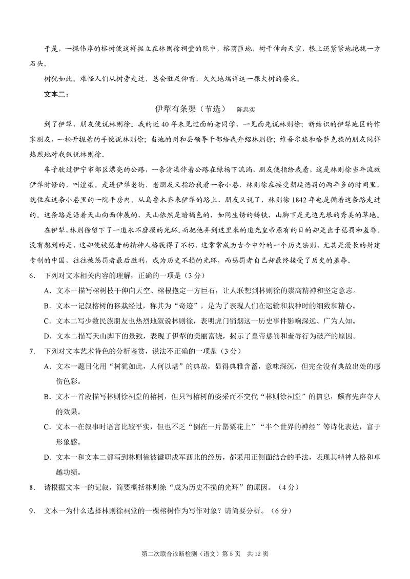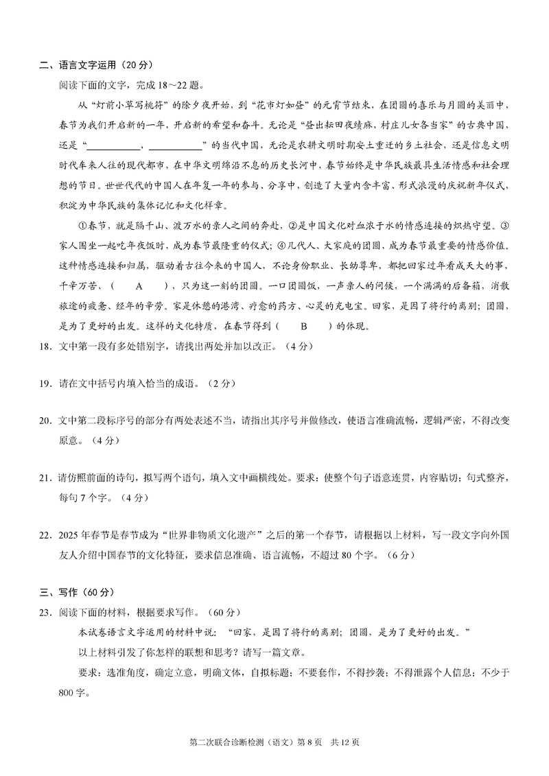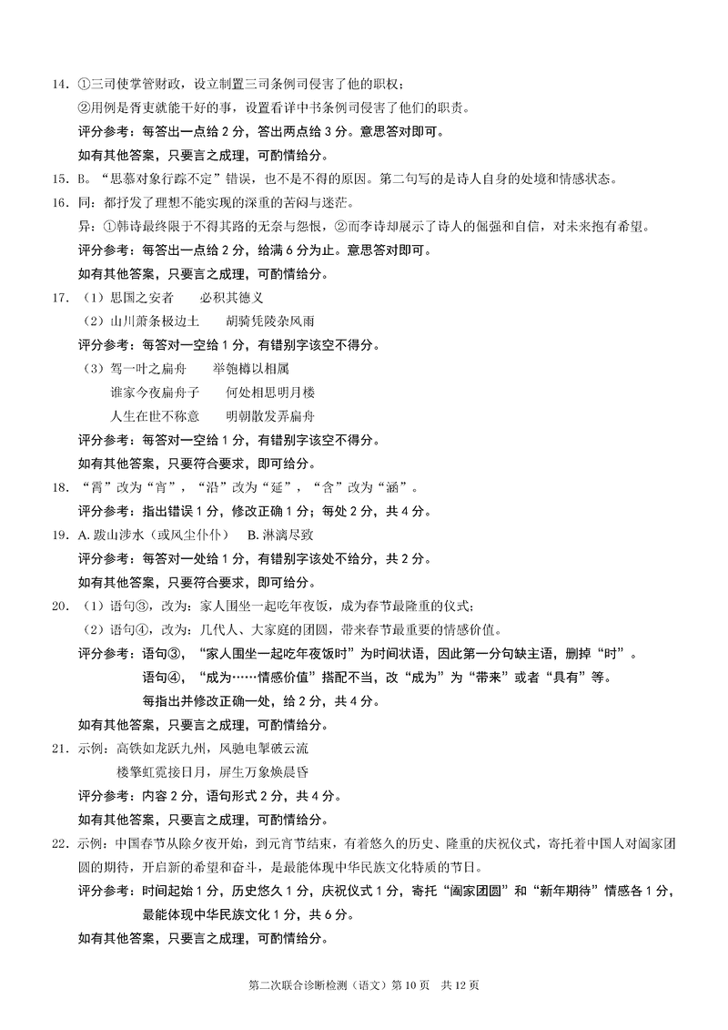 重庆康德二诊2025年高三第二次联合诊断语文试题及答案
