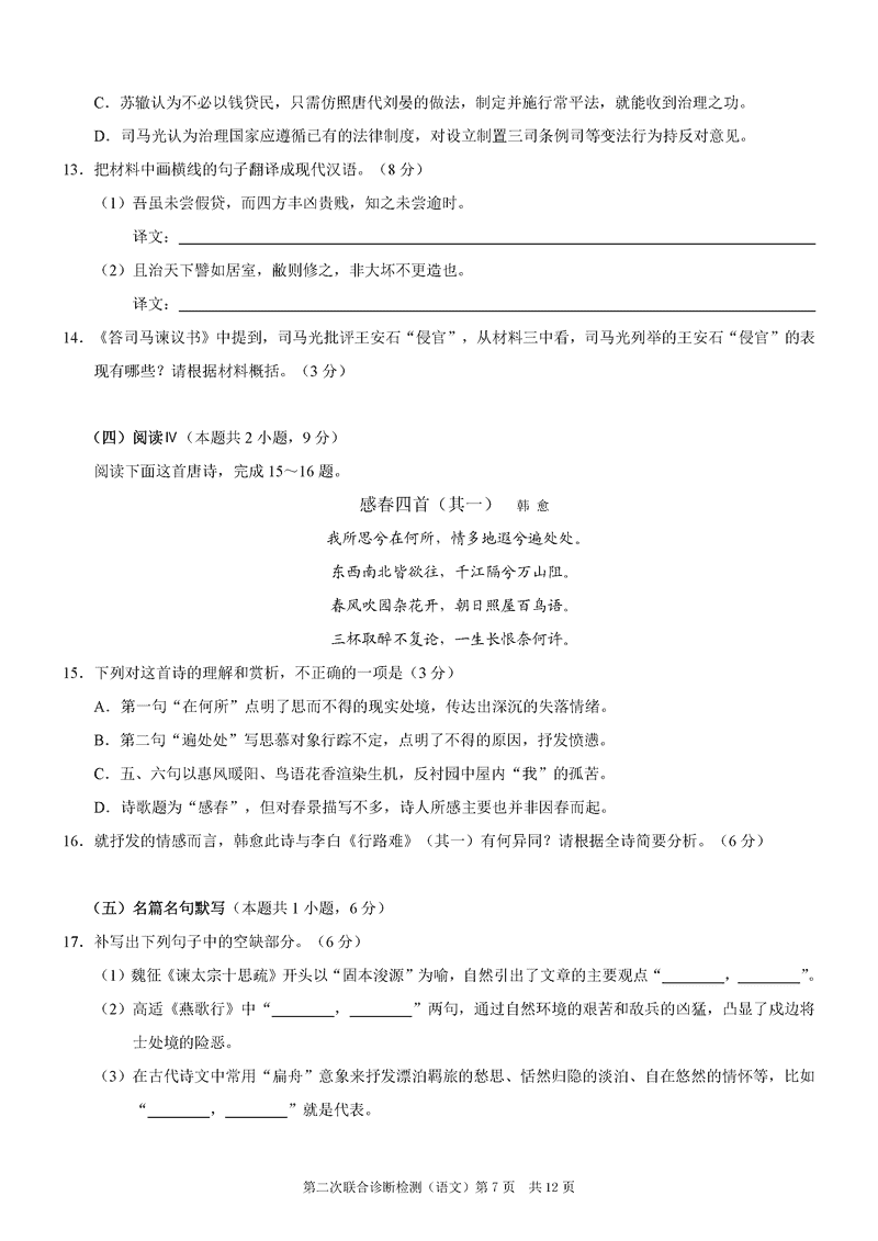 重庆 语文试题