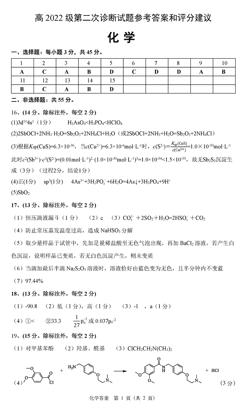 雅安市2025届高三下学期第二次诊断性化学考试已于近日开考,为方便考生考后及时查看考试情况,查漏补缺、弥补不足,本文整理了试题答案解析相关信息!